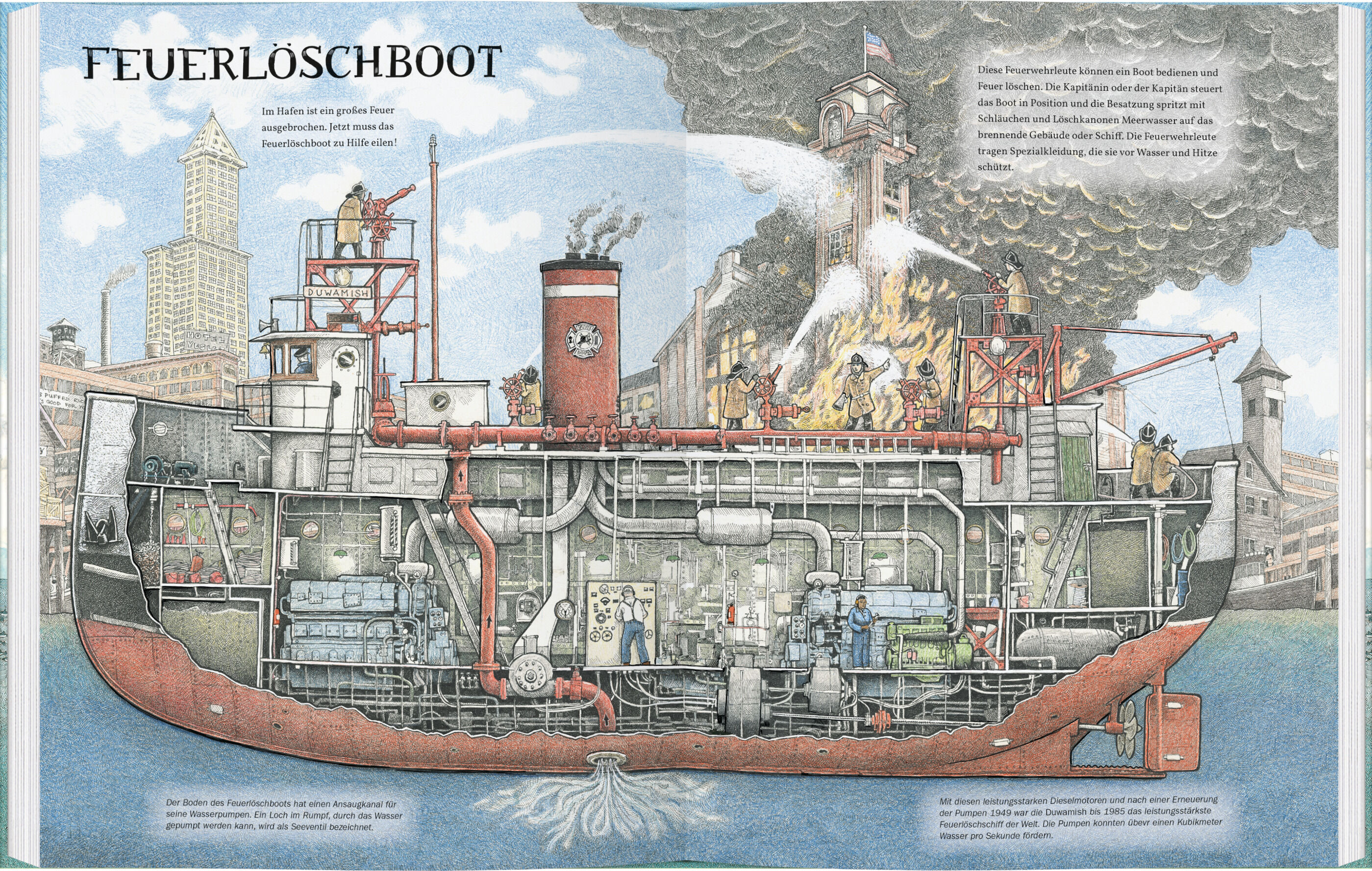 Mit ganzseitigen Querschnitten gibt dieses Sachbuch für Kinder ab 9 Jahren Einblick in das Innenleben von zehn faszinierenden Arbeitsschiffen und den Alltag der Menschen, die auf ihnen im Einsatz sind. Autorentext Tom Crestodina arbeitete als Fischer in Alaska...