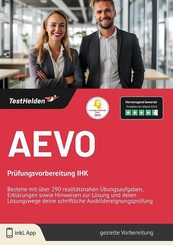 AEVO Prüfungsvorbereitung IHK: Bestehe deine Ausbildereignungsprüfung mit TestHelden Der Online-Testtrainer von TestHelden für die Ausbildereignungsprüfung nach neuem Rahmenplan bereitet dich mit hunderten praxisbezogenen und realitätsnahen Übungsaufgaben inkl...