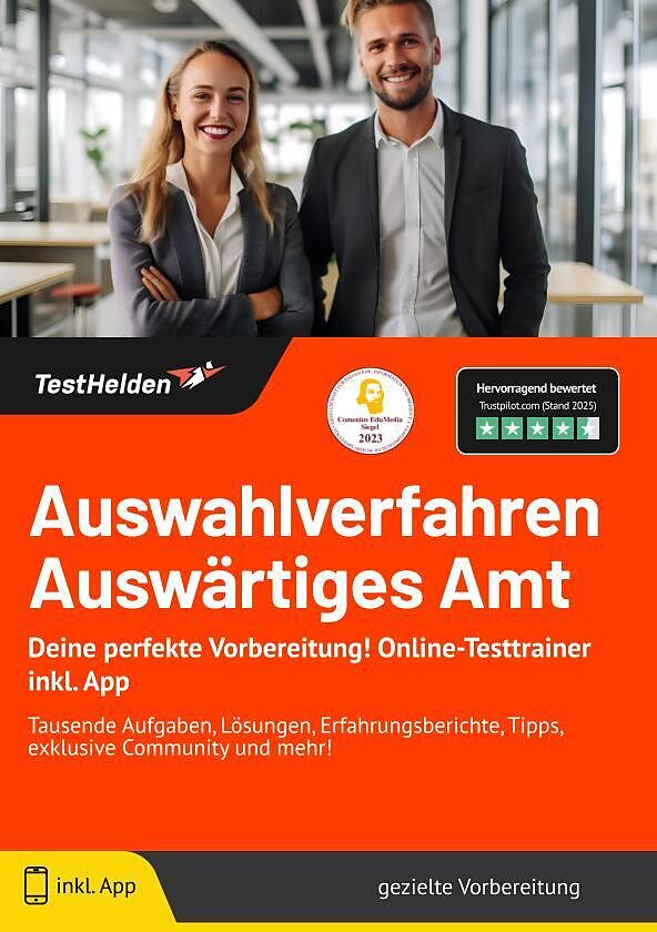 Aktuelle, überarbeitete Fassung für 2026. Dein Auswahlverfahren Auswärtiges Amt steht an, aber noch kein Land in Sicht? Keine Panik! Mit unserem Buch + Online-Testtrainer hast du ab sofort einen starken Lernpartner immer an deiner Seite! Wir unterstützen dich ...