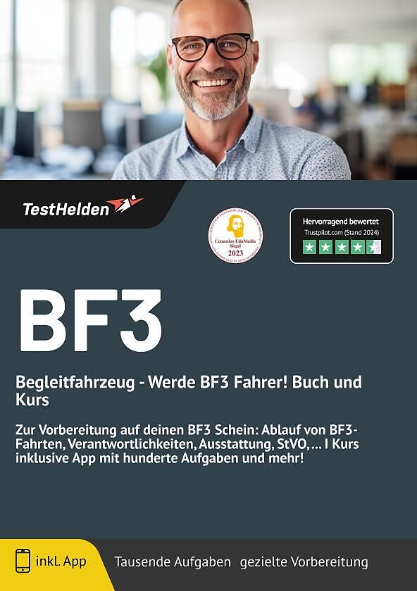 BF3-Prüfung erfolgreich bestehen. Meistere mit unserem Trainingspaket unkompliziert und zielgerichtet deine BF3-Prüfung. Mit dem BF3-Eignungsprüfung Testtrainer sicher durch deinen Test! Die Straße ruft und wir machen dich fit! Wir bieten dir eine breite Palet...