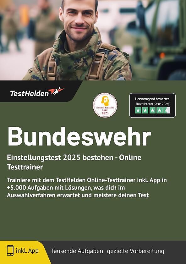 Bundeswehr Einstellungstest: bestehen - Online Testtrainer | Trainiere mit dem TestHelden Online-Testtrainer inkl. App in +5.000 Aufgaben mit Lösungen, was dich im Auswahlverfahren erwartet und meistere deinen Test
