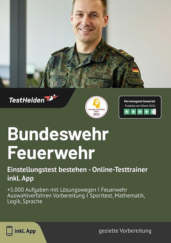 Bundeswehr Feuerwehr: Einstellungstest bestehen - Online-Testtrainer inkl. App | +5.000 Aufgaben mit Lösungswegen I Feuerwehr Auswahlverfahren Vorbereitung I Sporttest, Mathematik, Logik, Sprache
