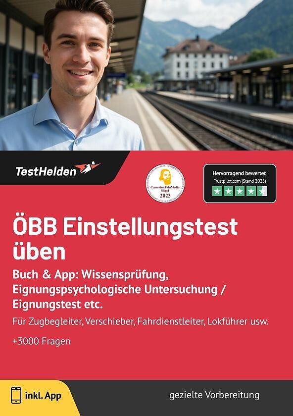 Dein ÖBB Einstellungstest üben steht an, aber noch kein Land in Sicht? Keine Panik! Mit unserem Buch + Online-Testtrainer hast du ab sofort einen starken Lernpartner immer an deiner Seite! Wir unterstützen dich umfassend bei deiner Vorbereitung. Sichere dir je...