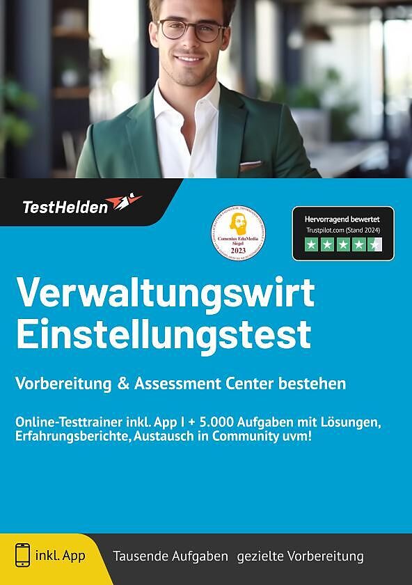 Sichere dir jetzt deinen TestHelden-Online-Testtrainer und erhalte ein umfangreiches Buch mit spannenden Tipps & Tricks für deine zielgerichtete und effektive Vorbereitung! Werde Teil unserer Community und bereite dich wie tausende andere Prüflinge mit uns...