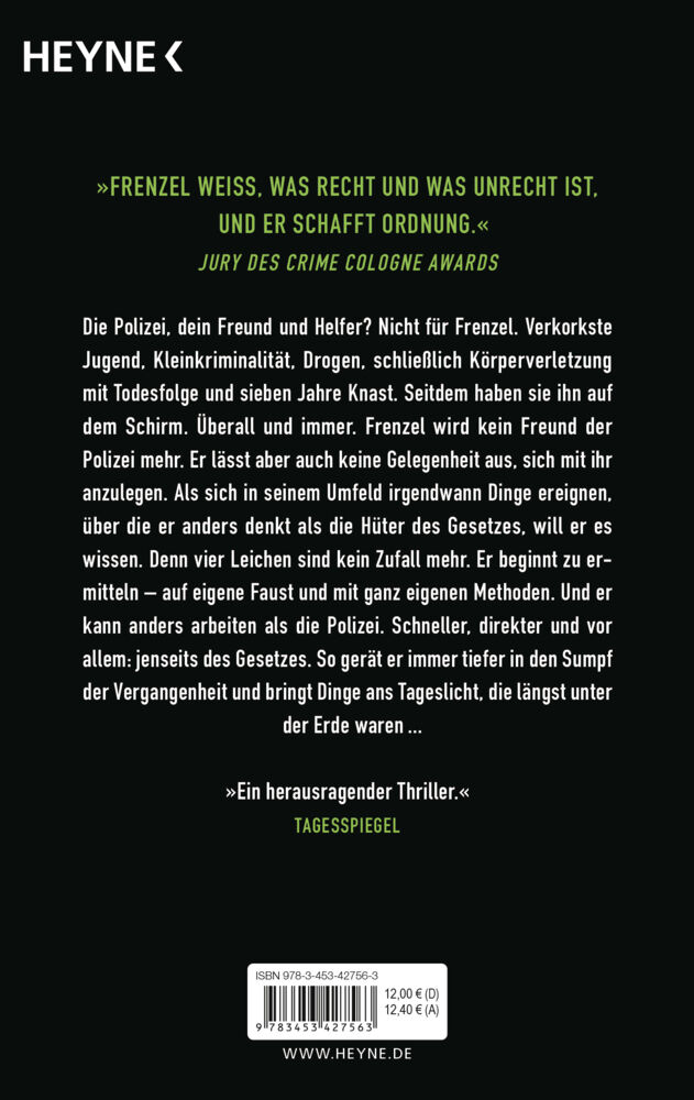 »Frenzel weiß, was Recht und was Unrecht ist, und er schafft Ordnung.« Jury des Crime Cologne Awards Die Polizei, dein Freund und Helfer? Nicht für Frenzel. Verkorkste Jugend, Kleinkriminalität, Drogen, schließlich Körperverletzung mit Todesfolge und sieben Ja...