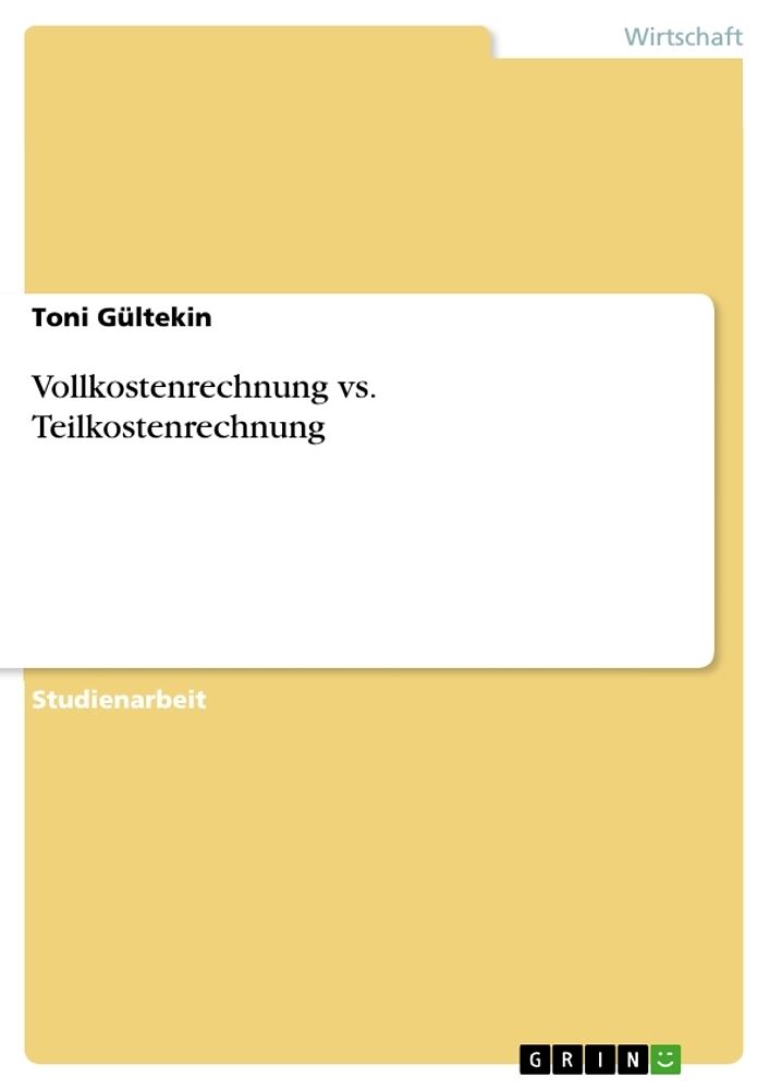 Studienarbeit aus dem Jahr 2006 im Fachbereich BWL - Industriebetriebslehre, Note: 1,1, Fachhochschule Kehl, Veranstaltung: Grundlagen der Kostenrechnung, Sprache: Deutsch, Abstract: Der Ursprung der Kostenrechnung lässt sich auf die Zeit der Entwicklung der B...
