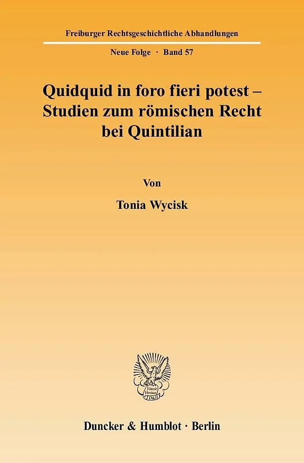 Tonia Wycisk untersucht, inwieweit der römische Rhetor Marcus Fabius Quintilianus in seinem Werk geltendes römisches Recht verwendet. Welche Rechtsinstitute kommen bei Quintilian vor? Entspricht das römische Recht in den rhetorischen Werken Quintilians der Rec...