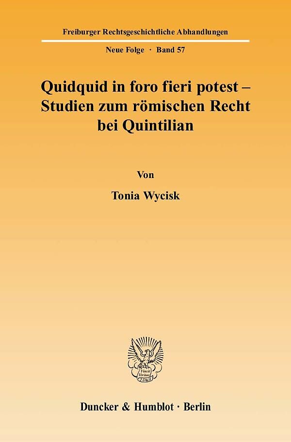 Tonia Wycisk untersucht, inwieweit der römische Rhetor Marcus Fabius Quintilianus in seinem Werk geltendes römisches Recht verwendet. Welche Rechtsinstitute kommen bei Quintilian vor? Entspricht das römische Recht in den rhetorischen Werken Quintilians der Rec...