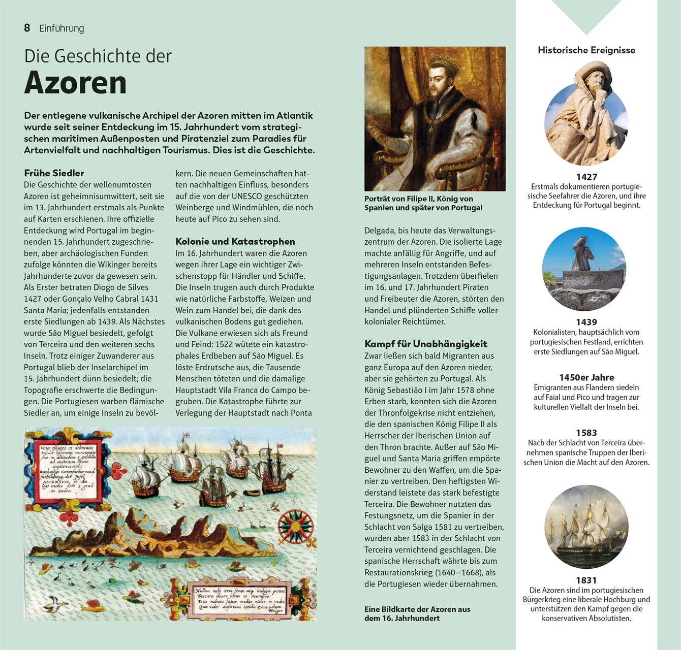 Die 10 größten Wunder der Natur, die 10 reizvollsten Spaziergänge und Wanderungen, die 10 schönsten Thermalquellen und Naturbäder: Mit dem TOP10-Prinzip planen Sie Ihre Azoren-Reise einfach und ganz individuell. Die praktischen TOP10-Listen präsentieren alle Attraktionen auf einen Blick: von den absoluten Highlights wie der Caldeira das Sete Cidades über besondere Themen wie Museen, Kunsthandwerk oder Spezialitäten bis zu den einzelnen Inseln mit ihren Attraktionen, Restaurants und Shops. So gestalten Sie im Nu Ihre persönliche Bucket List. Außerdem erwarten Sie Empfehlungen für die TOP10-Erlebnisse, spannende Erkundungstouren und ein Streifzug durch die faszinierende Geschichte der Azoren. Vor Ort ist der leichte, kompakte TOP10-Reiseführer schnell zur Hand, bietet Ihnen wertvolle Reise-Infos und führt Sie mit detaillierten Inselkarten und der herausnehmbaren wetterfesten Karte der Inselgruppe sicher an jedes Ziel.