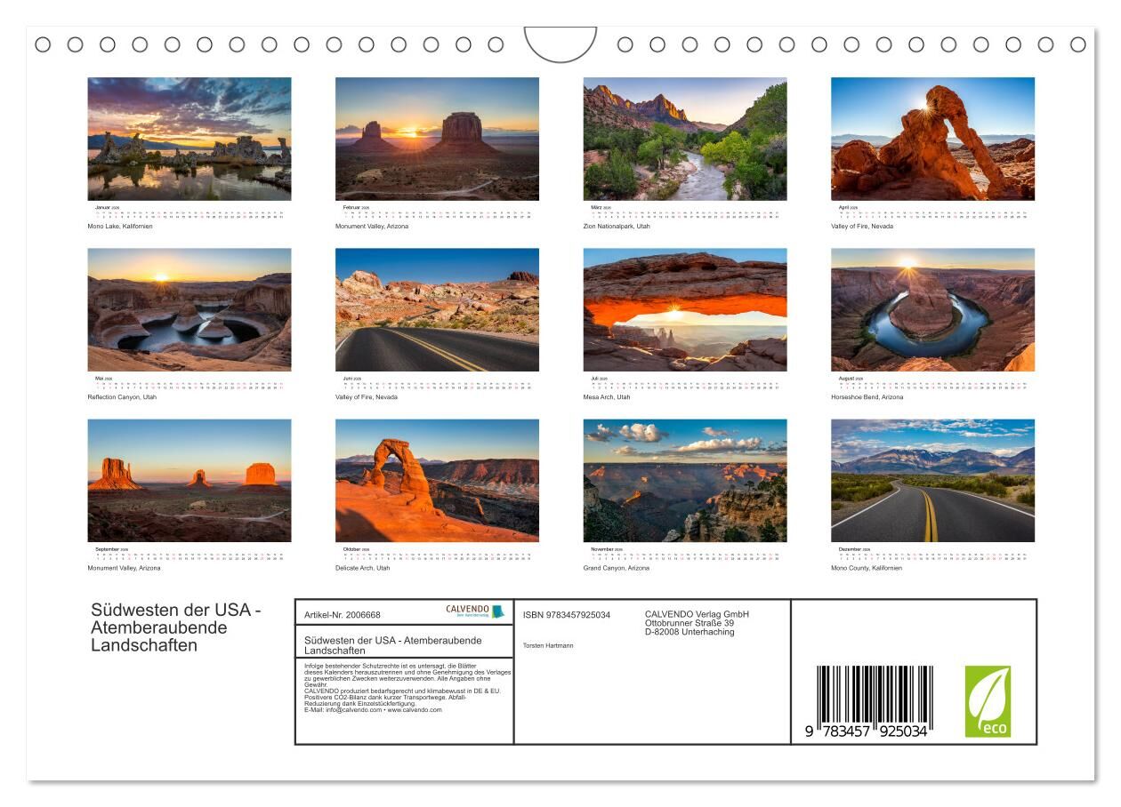 Der Südwesten der USA hat unzählige einzigartige Naturwunder und Landschaften zu bieten. In diesem Kalender präsentiert Torsten Hartmann einige seiner schönsten Motive von zahlreichen Foto-Reisen in den Südwesten der USA.