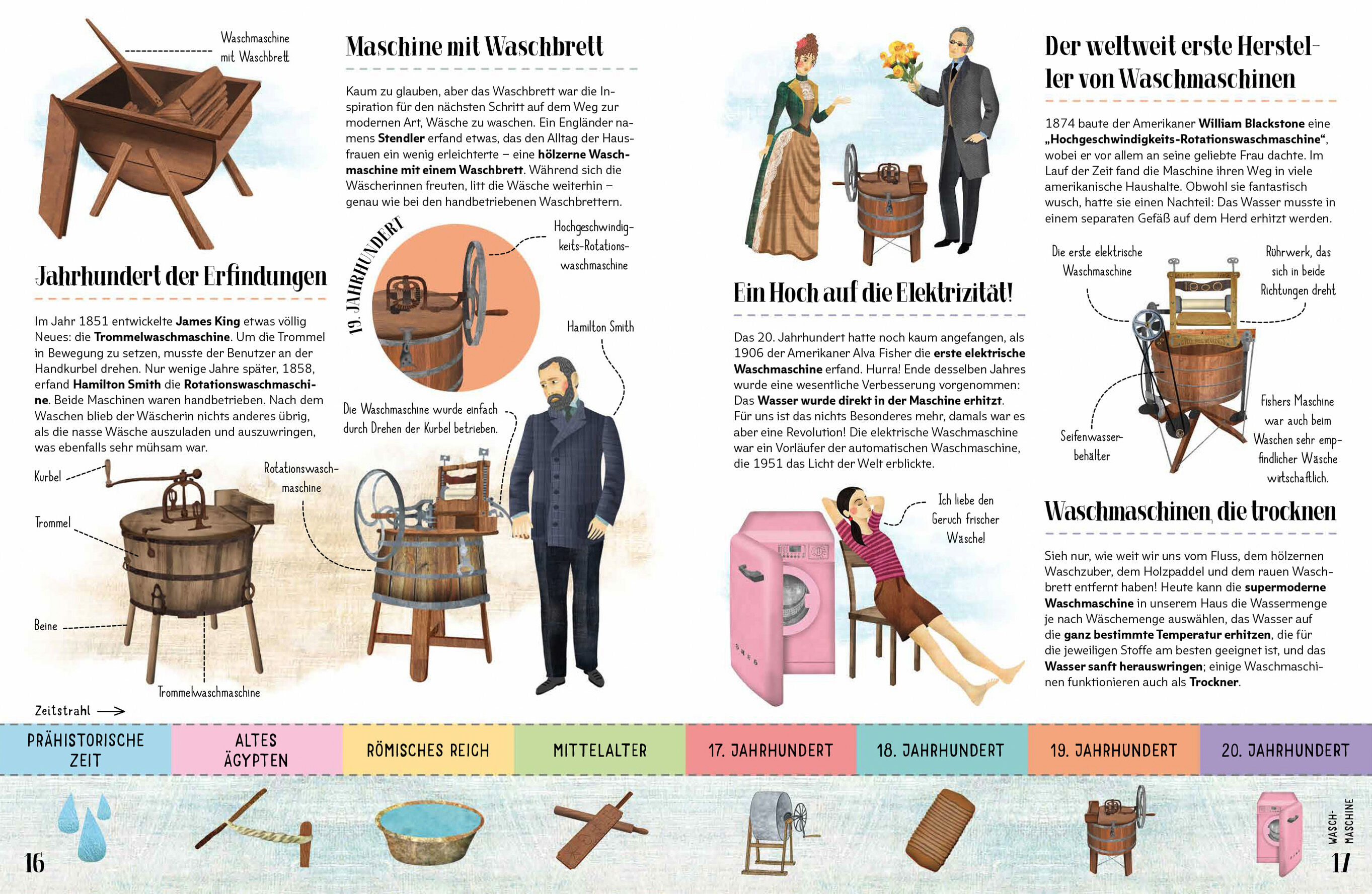 Hast du dich auch schon mal gefragt, wie die Menschen früher gelebt haben? Wie sahen Badezimmer bei den alten Ägyptern aus? Hatten die Menschen im Mittelalter auch schon gemütliche Betten? Wie wurde in der Vorzeit Wäsche gewaschen? Und seit wann kochen wir ei...