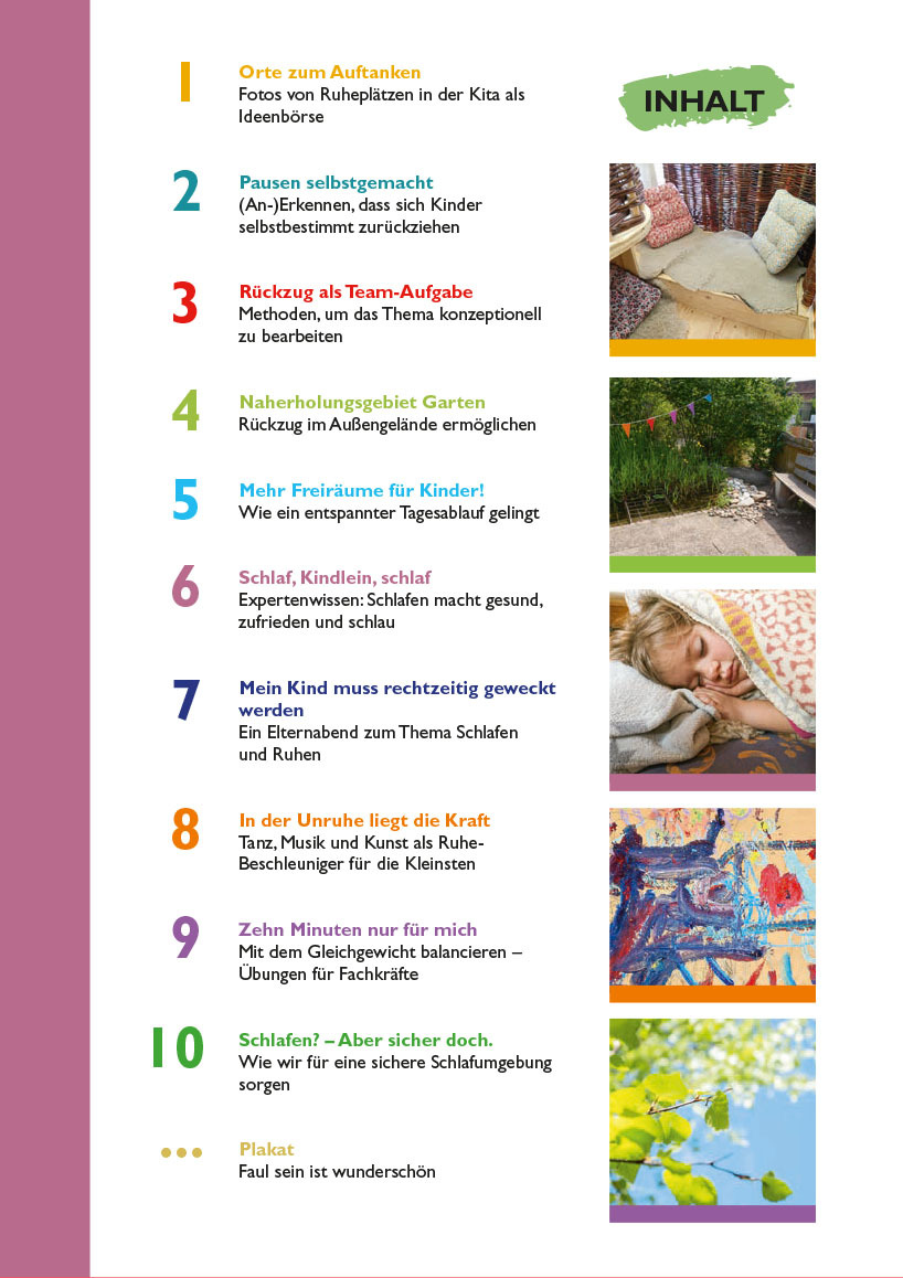 Viele Kinder verbringen heute mehr Alltag in der Kita als zu Hause. Höchste Zeit, sich bei Qualitätsdiskursen nicht nur Gedanken über Projekte, Aktivitäten und Bewegung zu machen, sondern auch darüber, wie die Kinder dazwischen verschnaufen und auftanken könne...