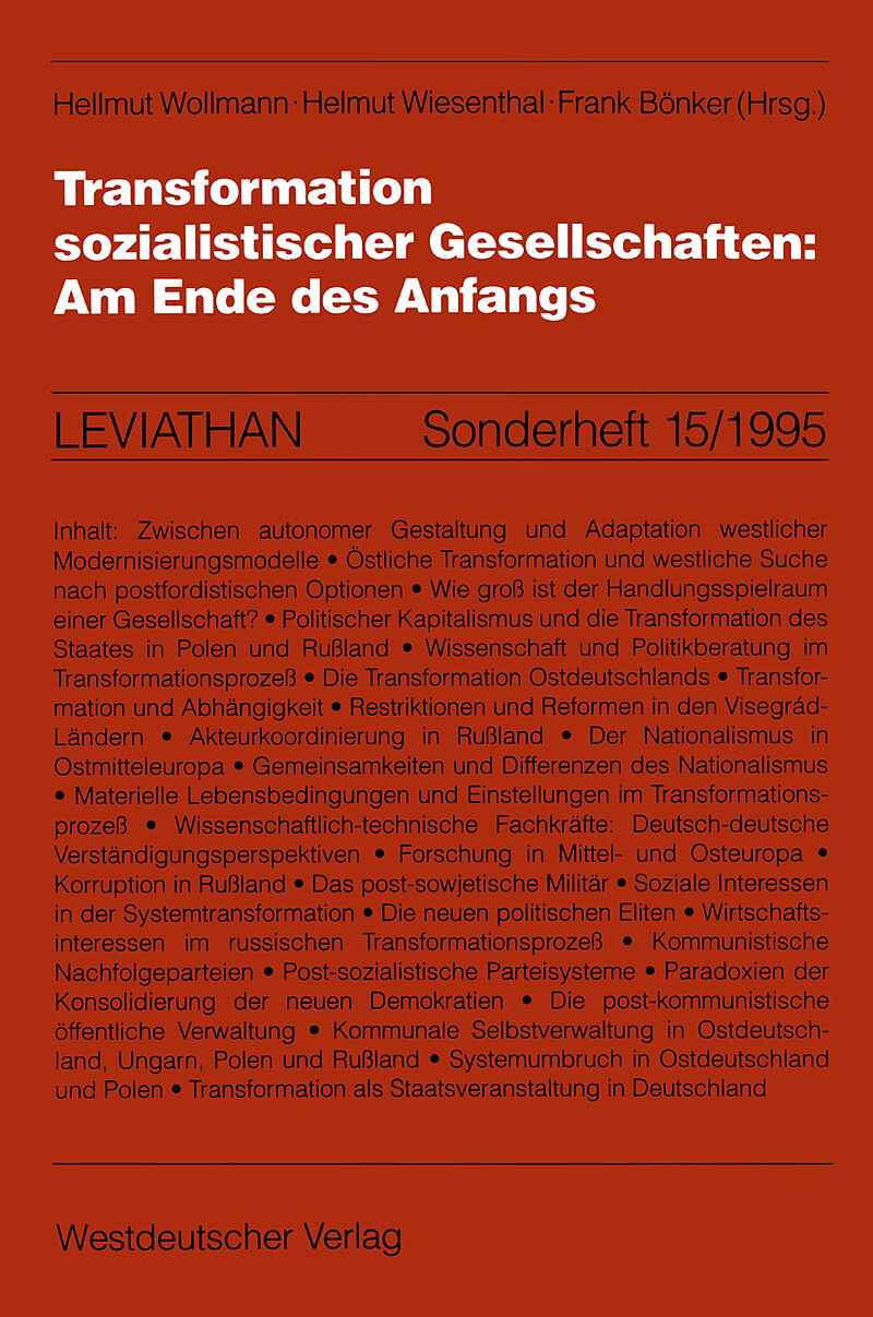 Autorentext Dr. Hellmut Wollmann ist Professor für Verwaltungslehre an der Humboldt-Universität zu Berlin. Dr. Helmut Wiesenthal ist Leiter der MPI-Arbeitsgruppe Transformationsprozesse und Professor an der Humboldt-Universität zu Berlin. Frank Bönker ist wiss...