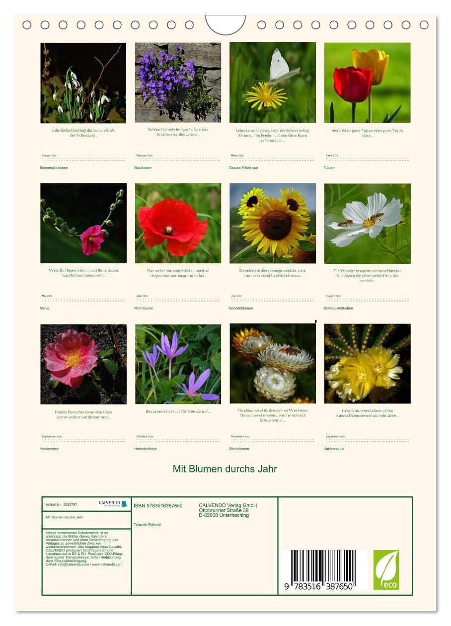 Mit Blumen durchs Jahr (Wandkalender 2026 DIN A4 hoch), CALVENDO Monatskalender