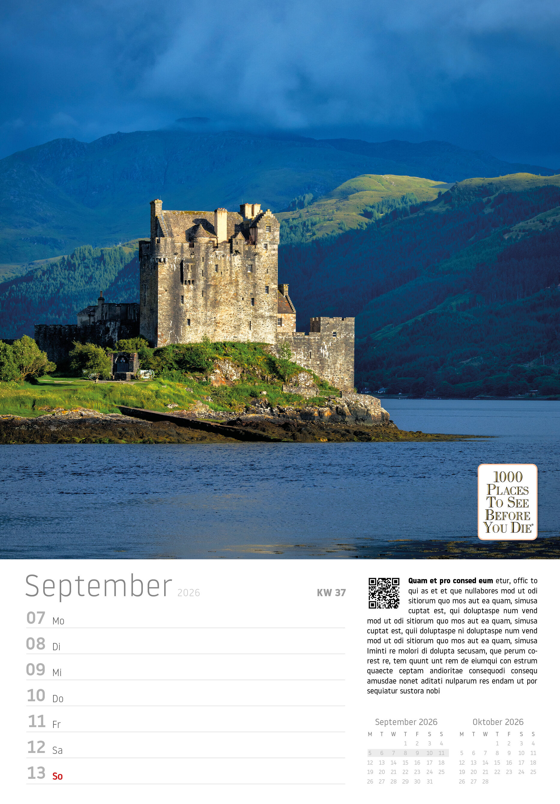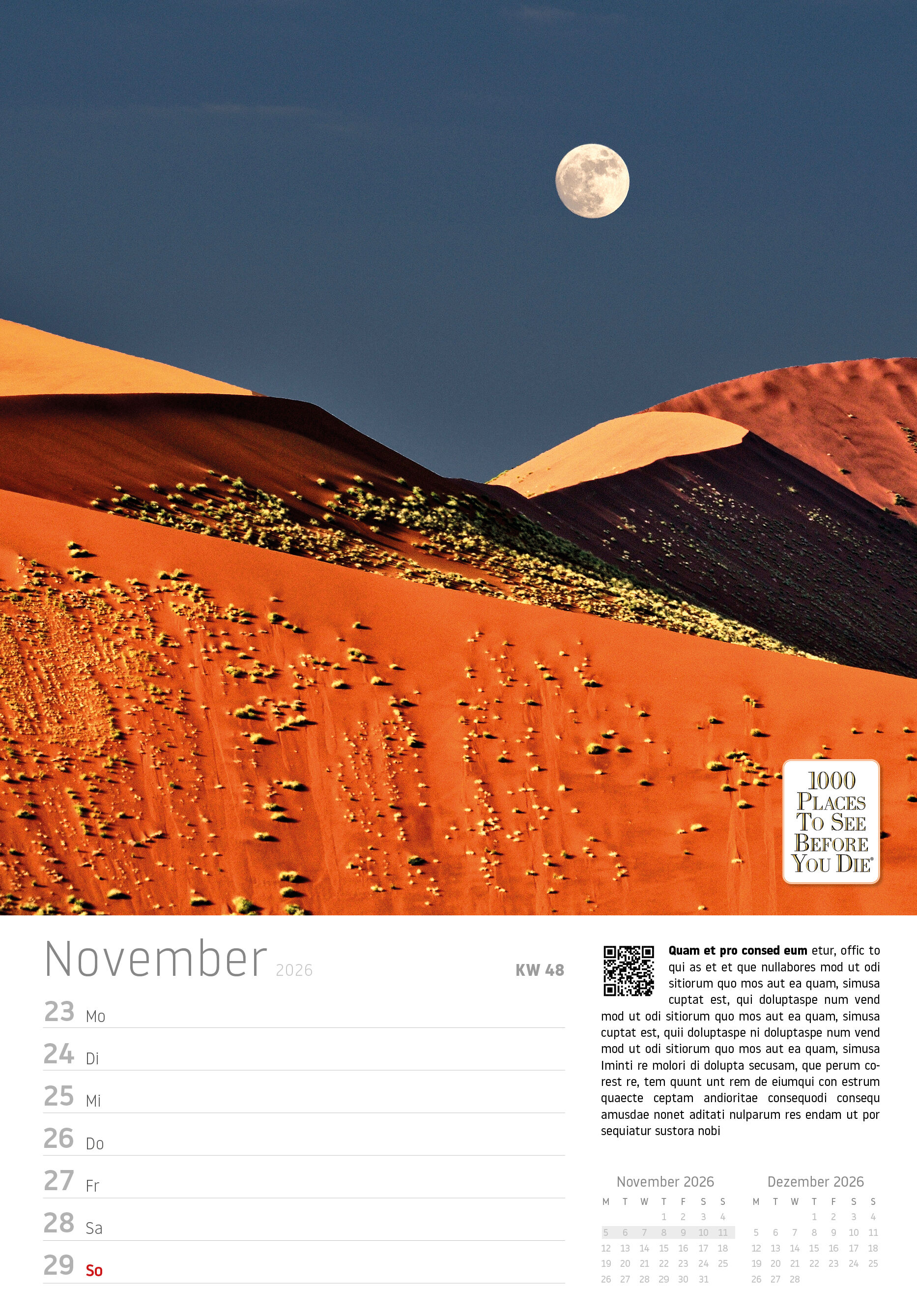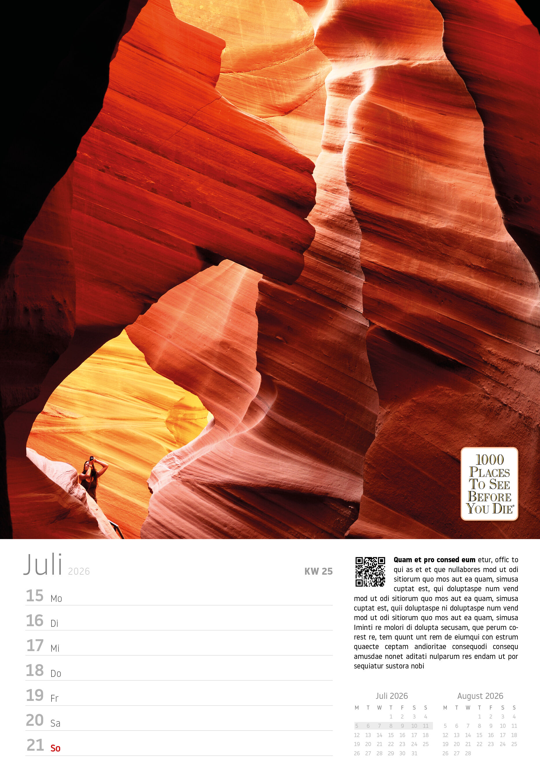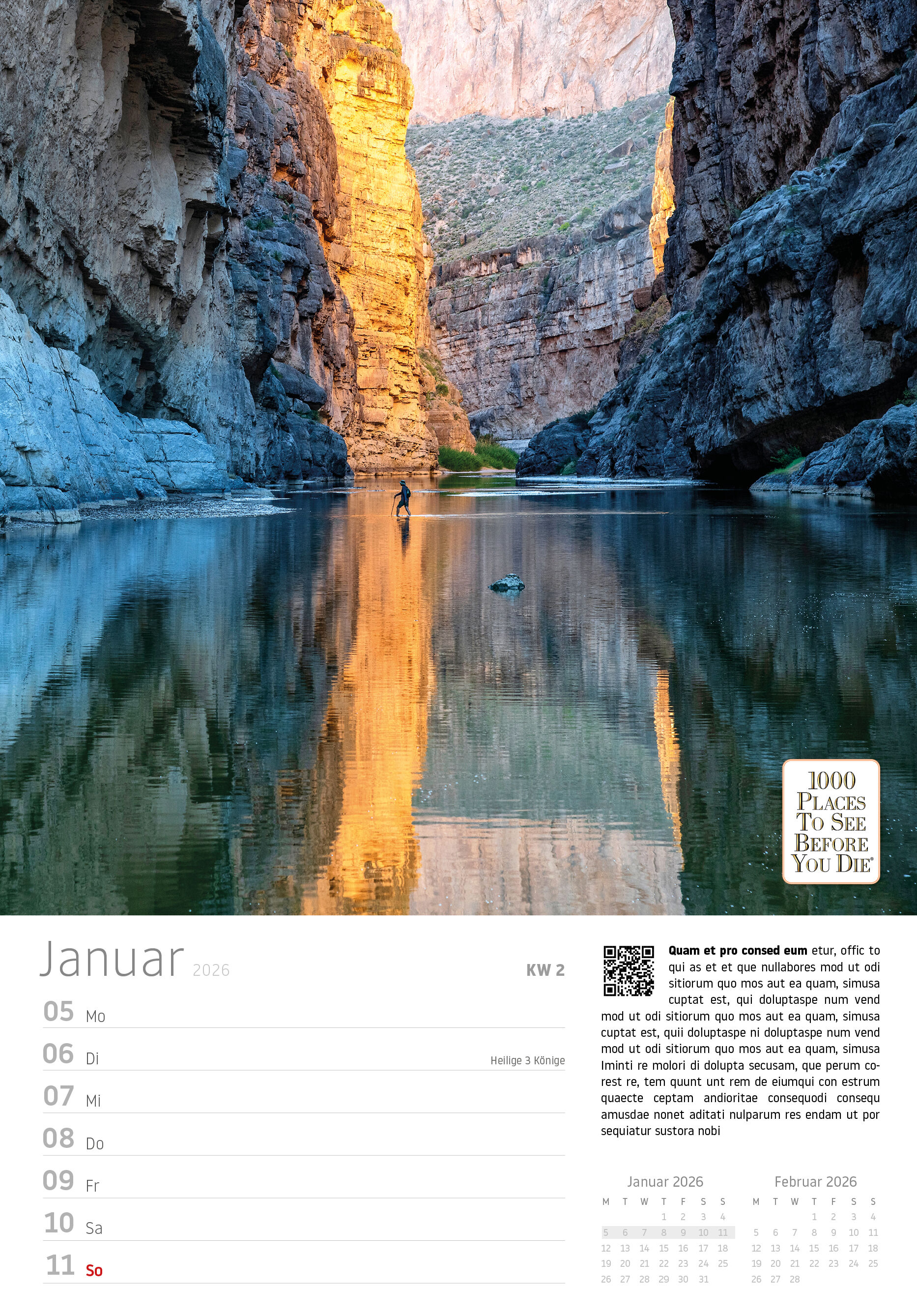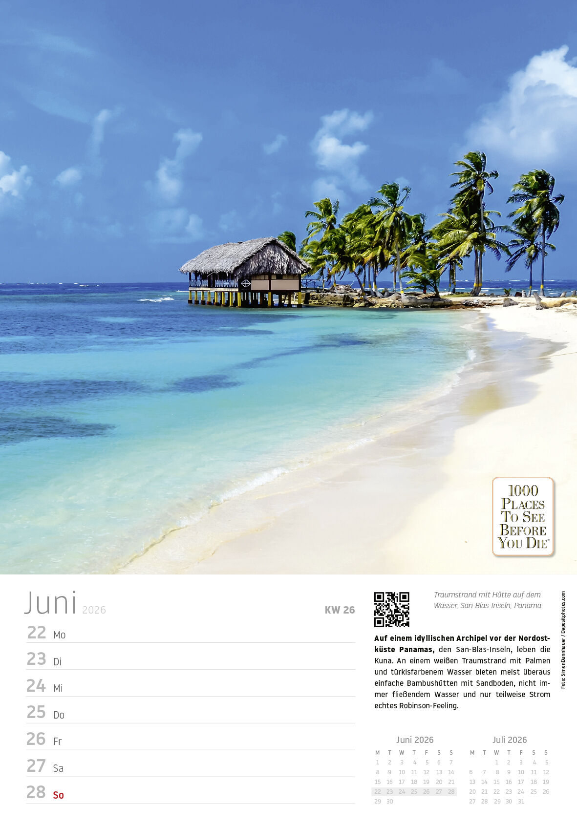 1000 Places to See Before You Die Traumziele Wochenplaner 2026 | Wandkalender 23,7 × 34 cm | 53 Wochenmotive & Reiseinfos