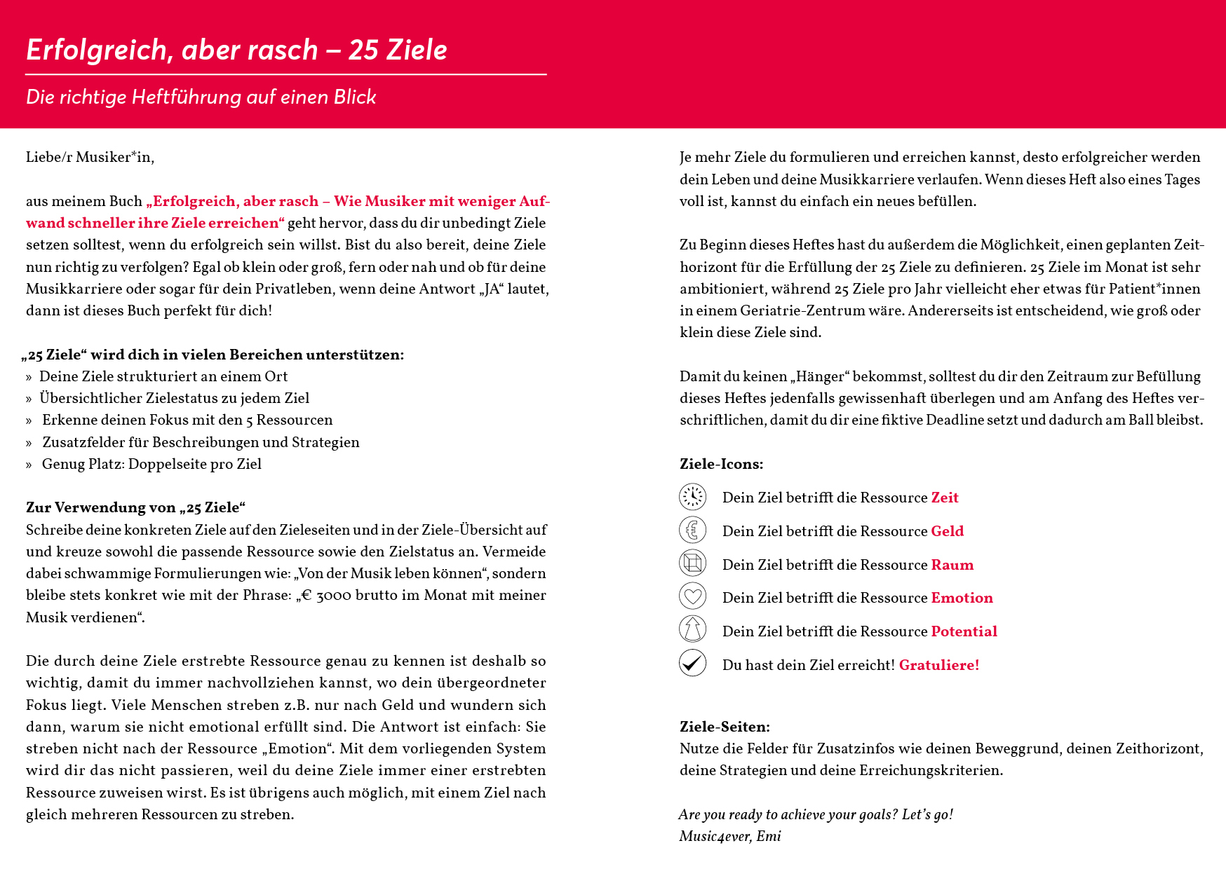 Bist du also bereit, deine Ziele nun richtig zu verfolgen? Egal ob klein oder groß, fern oder nah und ob für deine Musikkarriere oder sogar für dein Privatleben. Wenn deine Antwort JA lautet, dann ist dieses Buch perfekt für dich! 25 Ziele wird dich in vielen ...