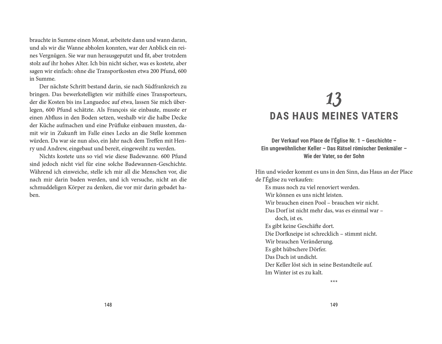Trevor Dolby, ein erfolgreicher Verlagsmanager und Bücherliebhaber, lebt mit seiner Familie in London und träumt von einem zweiten Zuhause im warmen Südfrankreich. In dem kleinen Dorf Causses-et-Veyran werden sie schließlich fündig: An der Place de l'Eglise s...