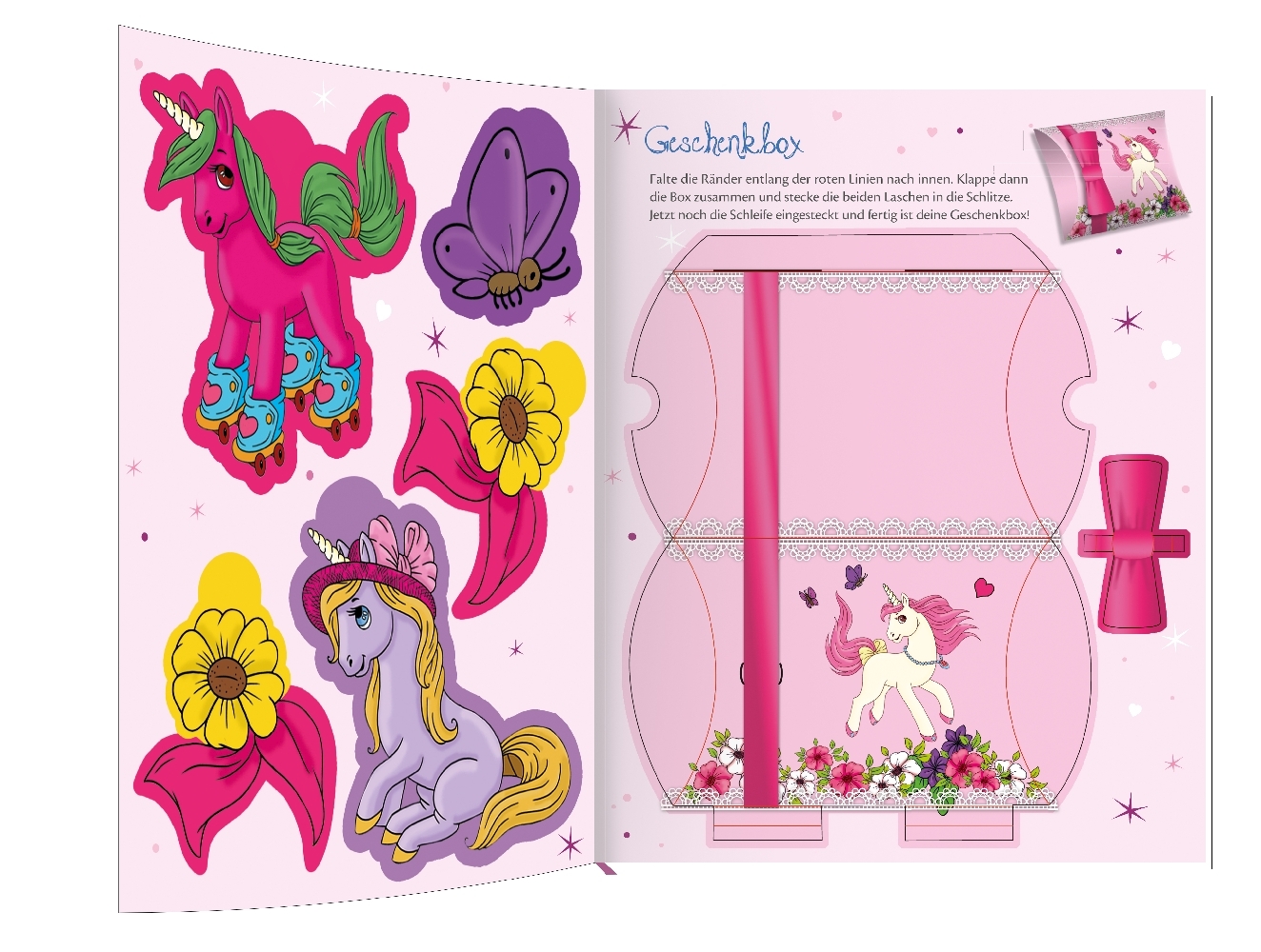Großer Bastelspaß in der Einhornzauberwelt. Viele nützliche Dinge für kleine Schätze und Alltagsdinge können ohne Schere und Leim gebastelt werden.