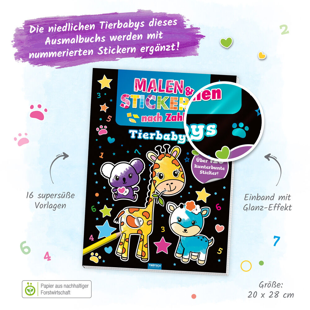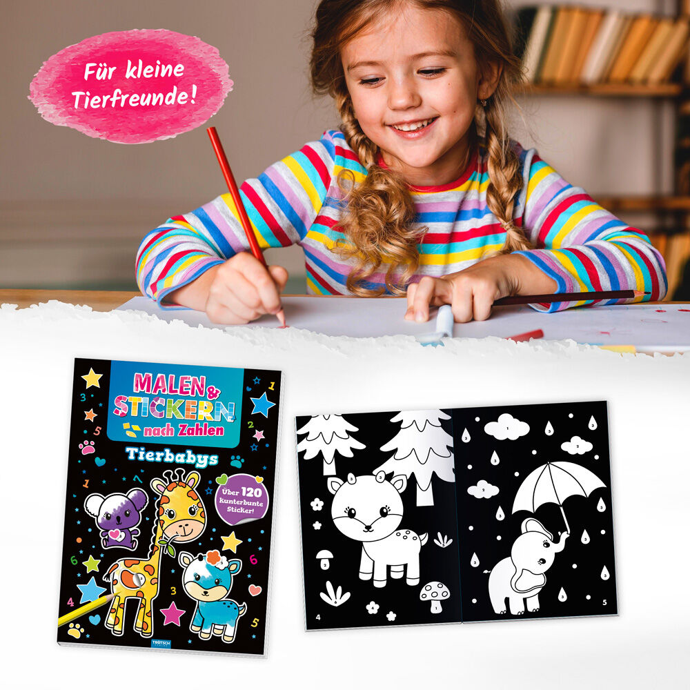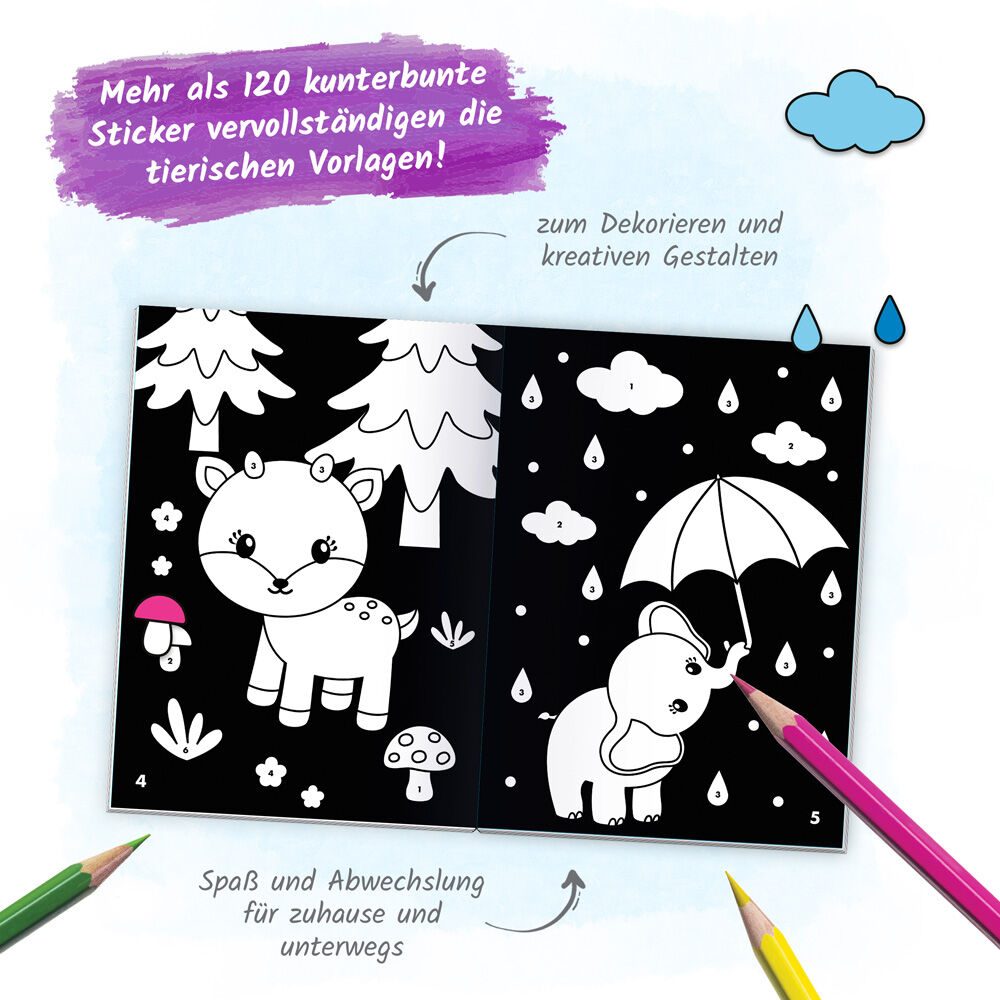 Gesucht und gefunden! In diesem besonderen Stickerheft warten über 120 Sticker darauf, auf ihren Platz mit der passenden Zahl geklebt zu werden. Anschließend können die niedlichen Vorlagen der Tierbabys mit den Lieblingsstiften kunterbunt ausgemalt werden. So ...