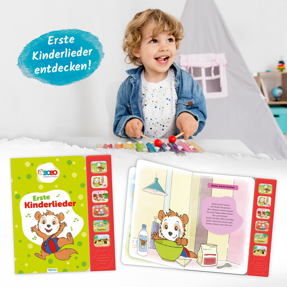Erste Kinderlieder BOBO Bobo Siebenschläfer und seine Freunde lieben Musik! Dieses bunte Soundbuch mit den Melodien von 6 bekannten Kinderliedern lädt alle zum Mitsingen ein. Ein toller Spaß für kleine Sänger und Fans von Bobo Siebenschläfer! Alle meine Entche...
