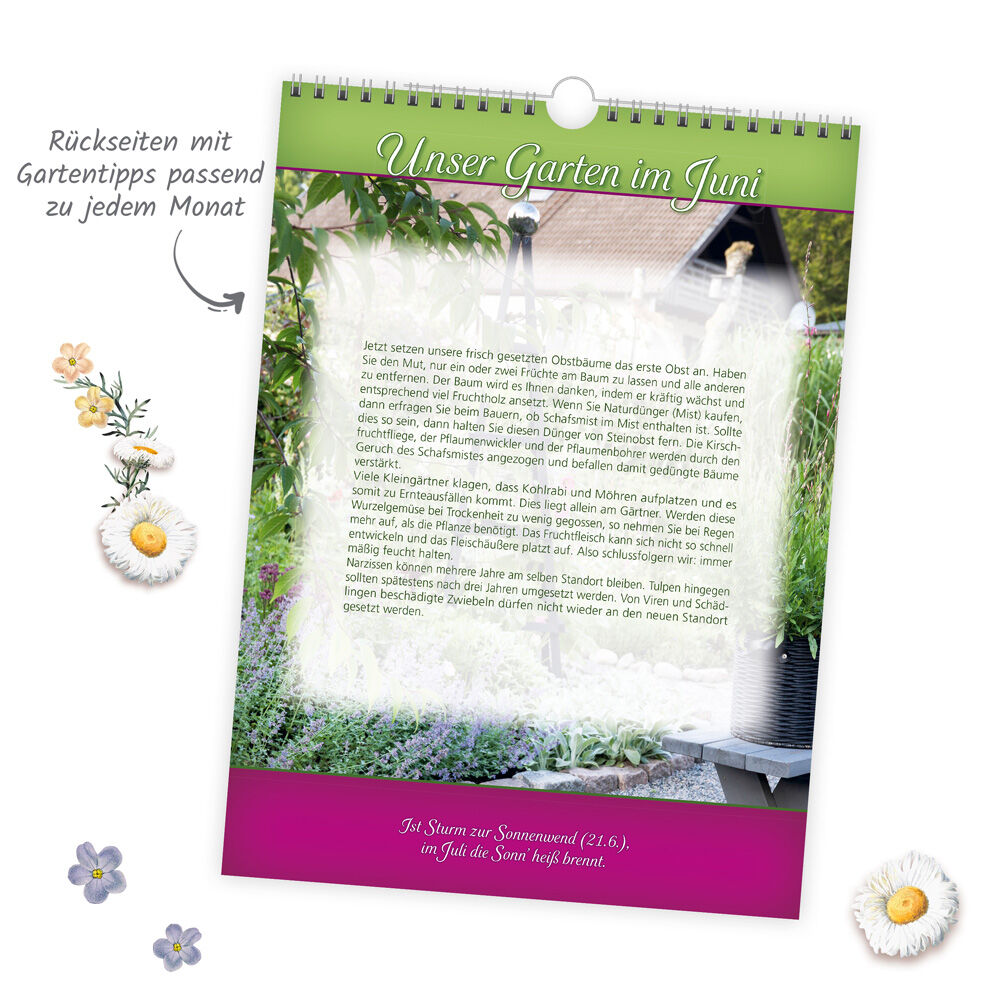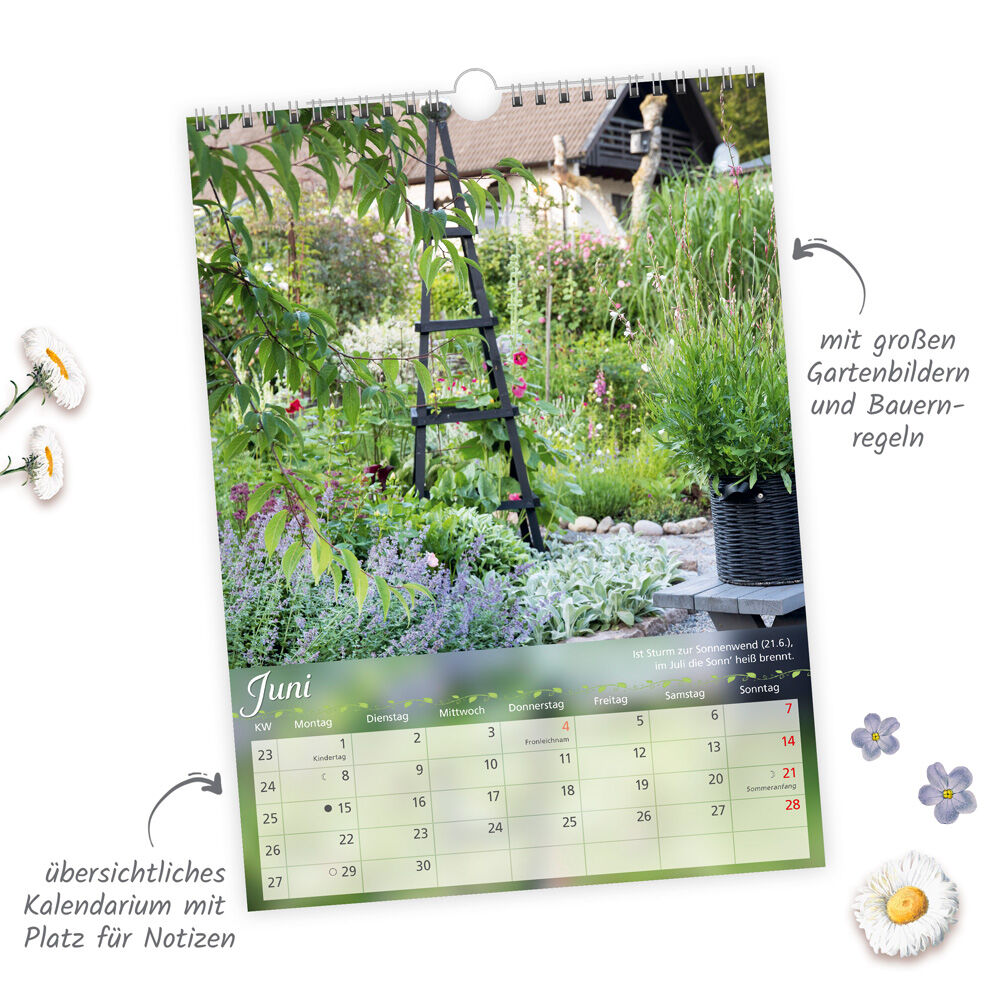 Der dekorative Gartenkalender im Format 24 x 33 cm mit seinen herrlichen Fotos rückt die Natur in den Fokus und wartet mit zusätzlichen, spannenden Informationen in jedem Monat auf. Dank gut ablesbaren Kalendariums, markierter Feiertage, Mondphasen und Platz f...
