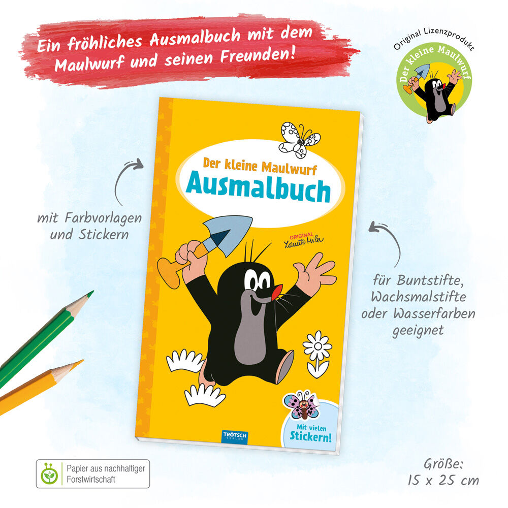 Auf die Stifte, fertig, los! In diesem tollen Malbuch können Fans vom kleinen Maulwurf ihrer Kreativität freien Lauf lassen und dabei spielerisch ihre Feinmotorik schulen. Tolle Vorlagen und zusätzliche Sticker garantieren Ausmalspaß für viele kunterbunte Stun...