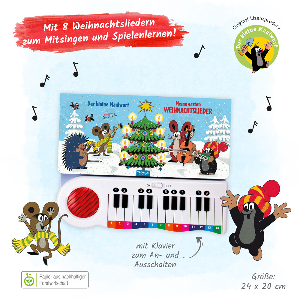 In diesem tollen Klavierbuch laden der Maulwurf und seine Freunde zum besinnlichen Musizieren und Mitsingen in der Weihnachtszeit ein! Die farbig markierten Noten und die passenden Tasten lassen das Klavierspielen einfach und schnell gelingen. Bei kleinen Text...