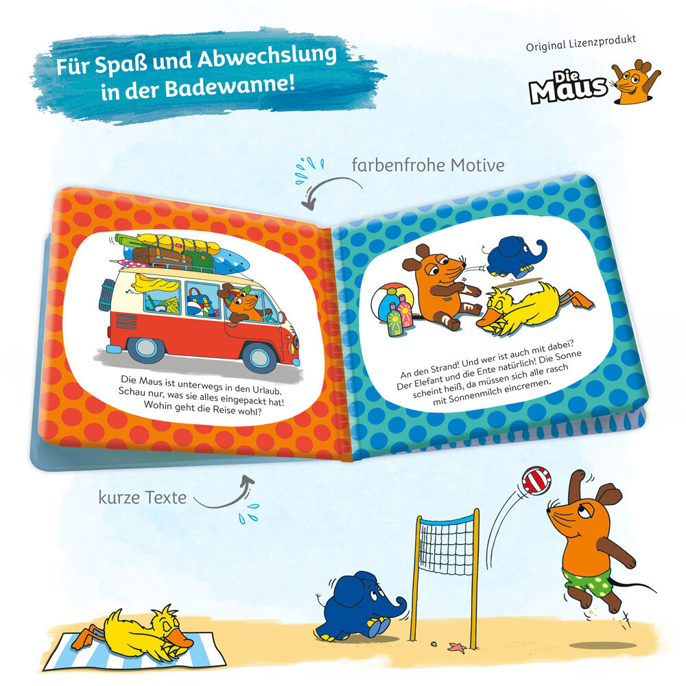 In der Badewanne Planschen macht Spaß erst recht mit der Maus und ihren Freunden! Dieses Badebuch mit 8 fröhlich-bunten Seiten ist nicht nur toll für kleine Wassermäuse, es ist auch eine prima Hilfe, um kleine Maus-Fans spielerisch zum Baden zu motivieren. Kla...