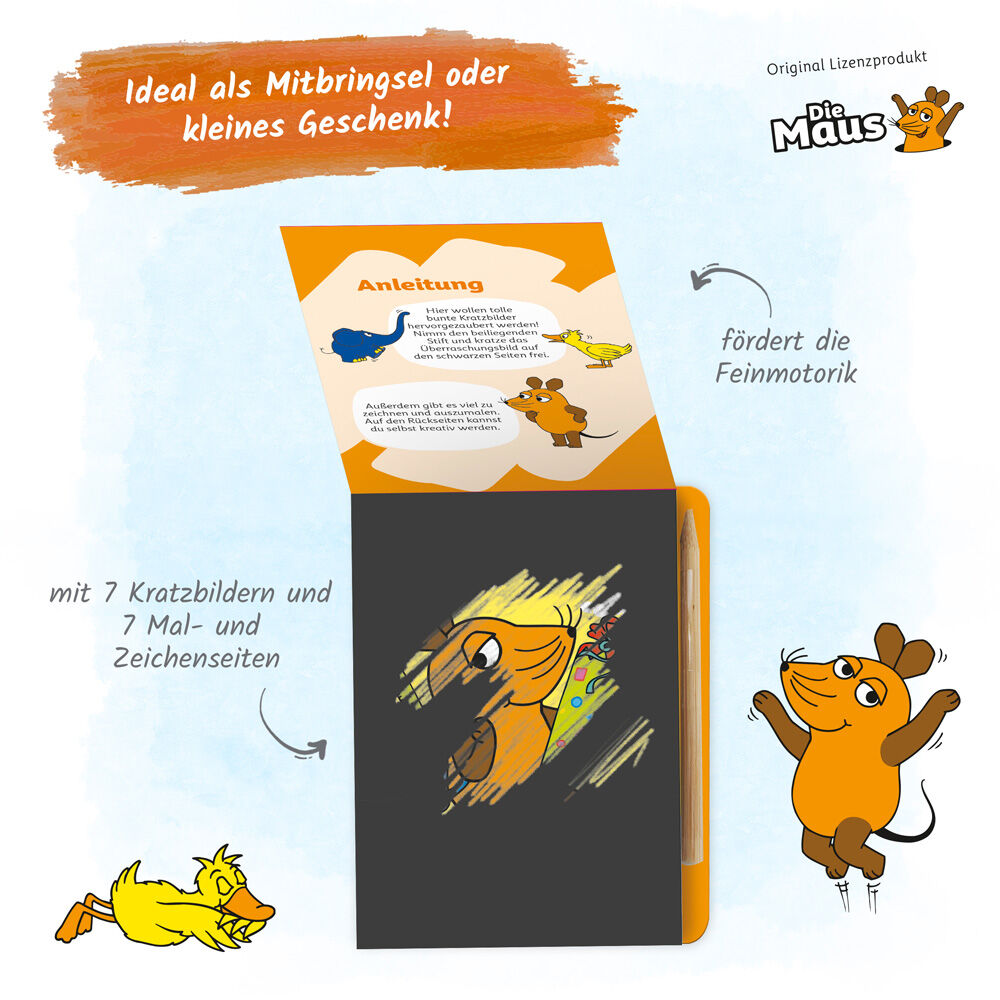 Der vielseitige Maus-Kritzelspaß im praktischen Block für zuhause oder unterwegs! Mithilfe des beiliegenden Holzstiftes können farbenfrohe Kunstwerke von der Maus und ihren Freunden ganz einfach aus dem schwarzen Papier gekratzt werden. Weitere Seiten mit Ausm...
