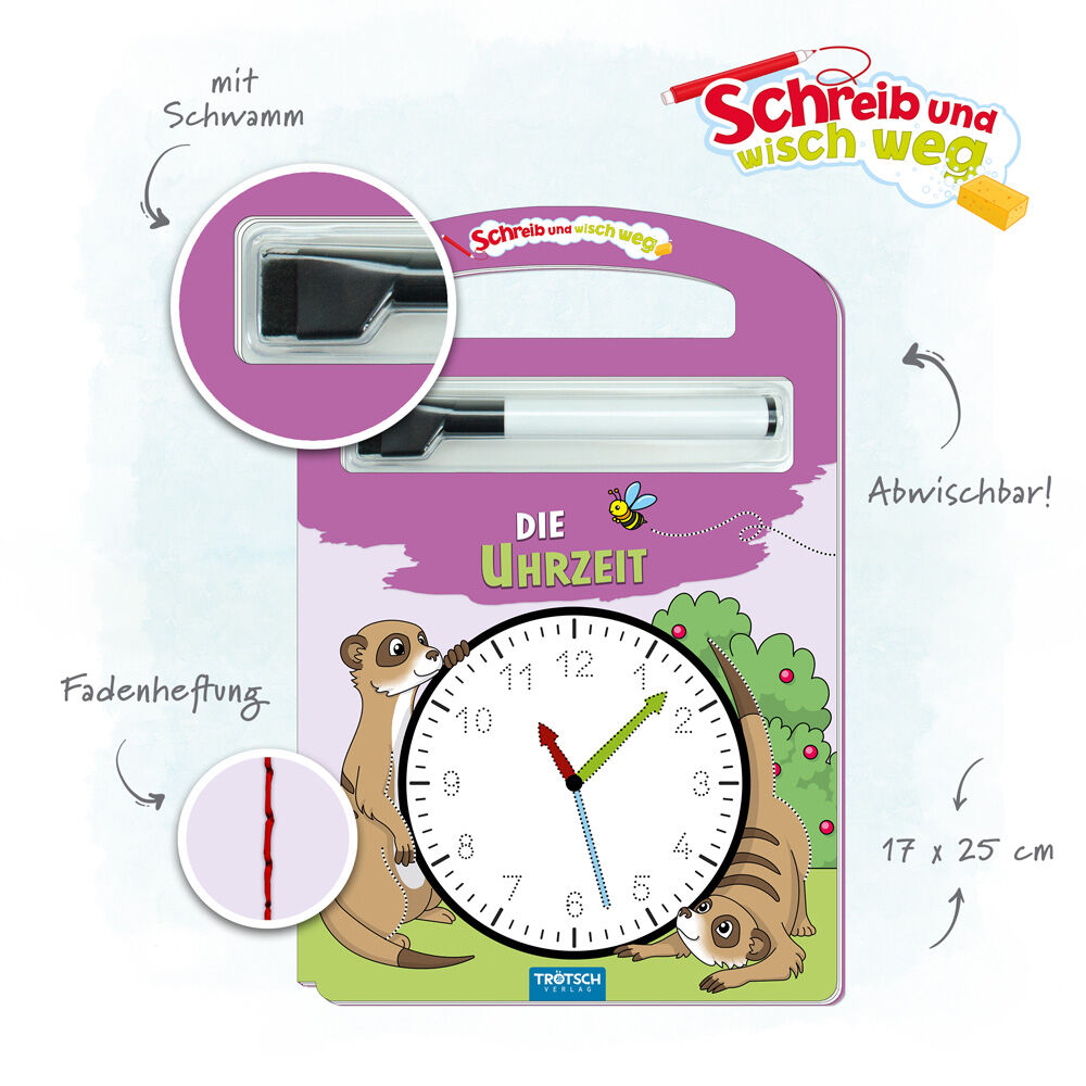 Fehler machen kein Problem! Dank Schritt-für-Schritt-Anleitungen, sowie der pfiffigen Schreib-und-Wisch-Weg-Oberfläche können alle Übungen beliebig oft wiederholt werden. 17 x 25 cm, 24 Seiten, Softcover, mit praktischem Henkel und Stift mit integriertem Schwa...
