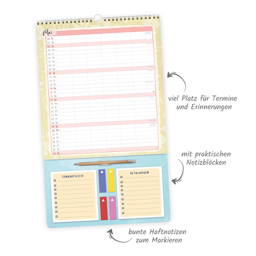 Damit keiner sagen kann, er hätte nichts gewusst! Der Familienkalender zeigt alle wichtigen Termine der gesamten Familie auf einen Blick. So wird der Kalender ein unverzichtbarer Alltagshelfer im aktiven Familienleben. Wie jedes Jahr hilft der Familienkalender...