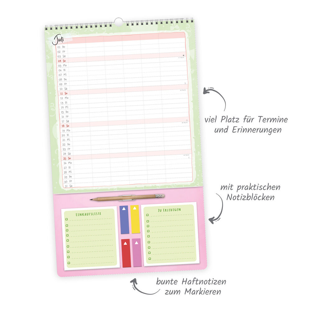 Damit keiner sagen kann, er hätte nichts gewusst! Der Familienkalender zeigt alle wichtigen Termine der gesamten Familie auf einen Blick. So wird der Kalender ein unverzichtbarer Alltagshelfer im aktiven Familienleben. Wie jedes Jahr hilft der Familienkalender...