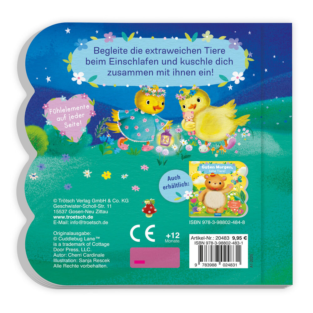 Die niedlichen Tiere sagen gute Nacht! Mit dem liebevoll illustrierten Fühlbuch kommen schon die Kleinsten mit stimmigen Reimen nach einem aufregenden Tag zur Ruhe. Die Fühlelemente auf jeder Seite laden zum Anfassen, Entdecken und Staunen ein. Der optimale Be...