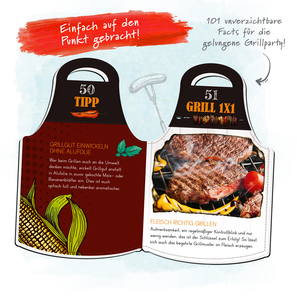 Ideal für jeden Mann, der sich am Feuer wohlfühlt und ein guter Gastgeber sein will. Ein tolles formgestanztes Buch zum Thema Grillen, mit Rezepten, Wissenswertem und Sprüchen.