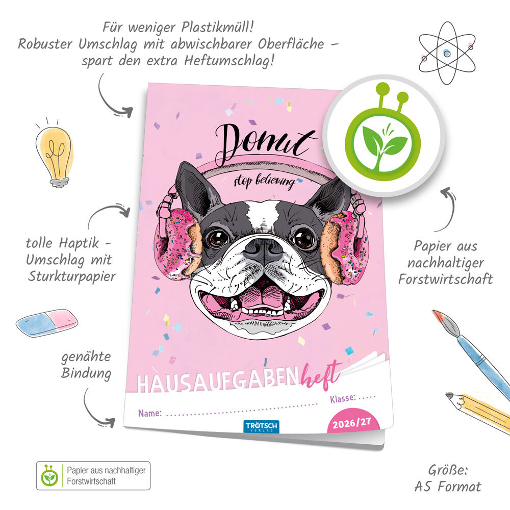 Jahresbezogenes Hausaufgabenheft im Format A5 für das Schuljahr 2026/27 mit 112 Seiten. Eine Woche wird auf zwei Seiten dargestellt, so dass ausreichend Platz zum Eintragen vorhanden ist. Das Hausaufgabenheft hat A-, B-, C-Wochen mit Jahreskalendarium, Lerntip...