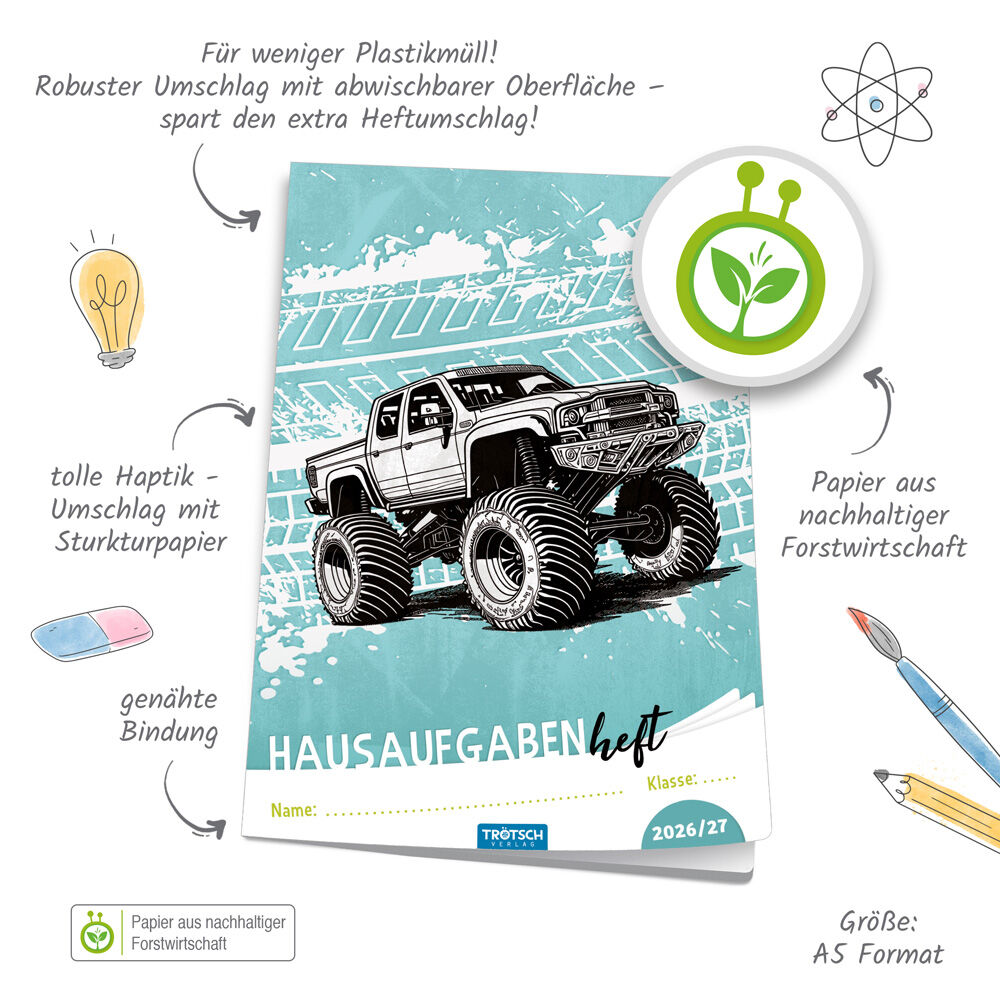 Jahresbezogenes Hausaufgabenheft im Format A5 für das Schuljahr 2026/27 mit 112 Seiten. Eine Woche wird auf zwei Seiten dargestellt, so dass ausreichend Platz zum Eintragen vorhanden ist. Das Hausaufgabenheft hat A-, B-, C-Wochen mit Jahreskalendarium, Lerntip...