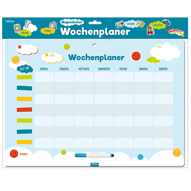Trötsch Magnetischer Wochenplaner Magnettafel mit Stift und Magneten