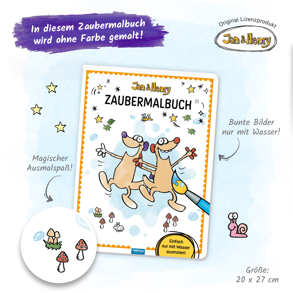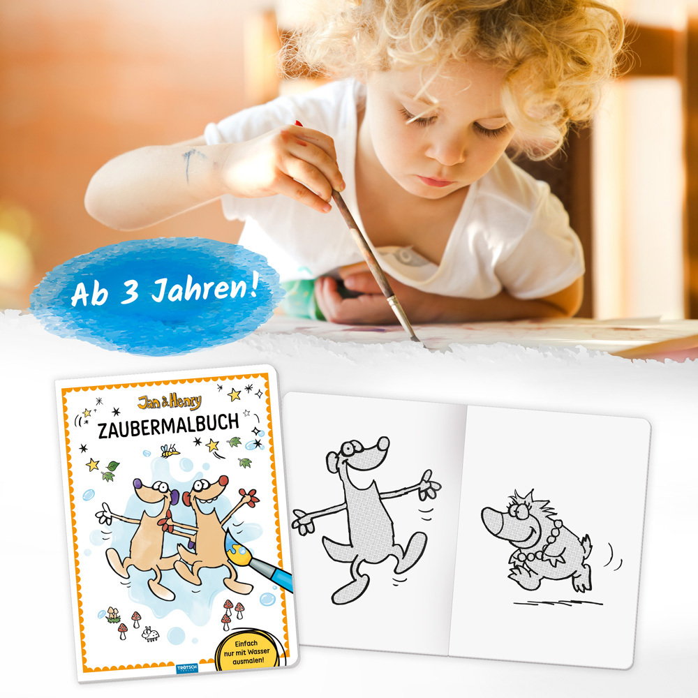 Malen ohne Farbe wie von Zauberhand mit dem Zaubermalbuch von Jan & Henry und ihren Freunden ist das kein Problem! Einfach mit Pinsel und Wasser die vielen fröhlichen Motive ausmalen und die neu entstandenen bunten Bilder bewundern. Der ganz besondere Ausm...