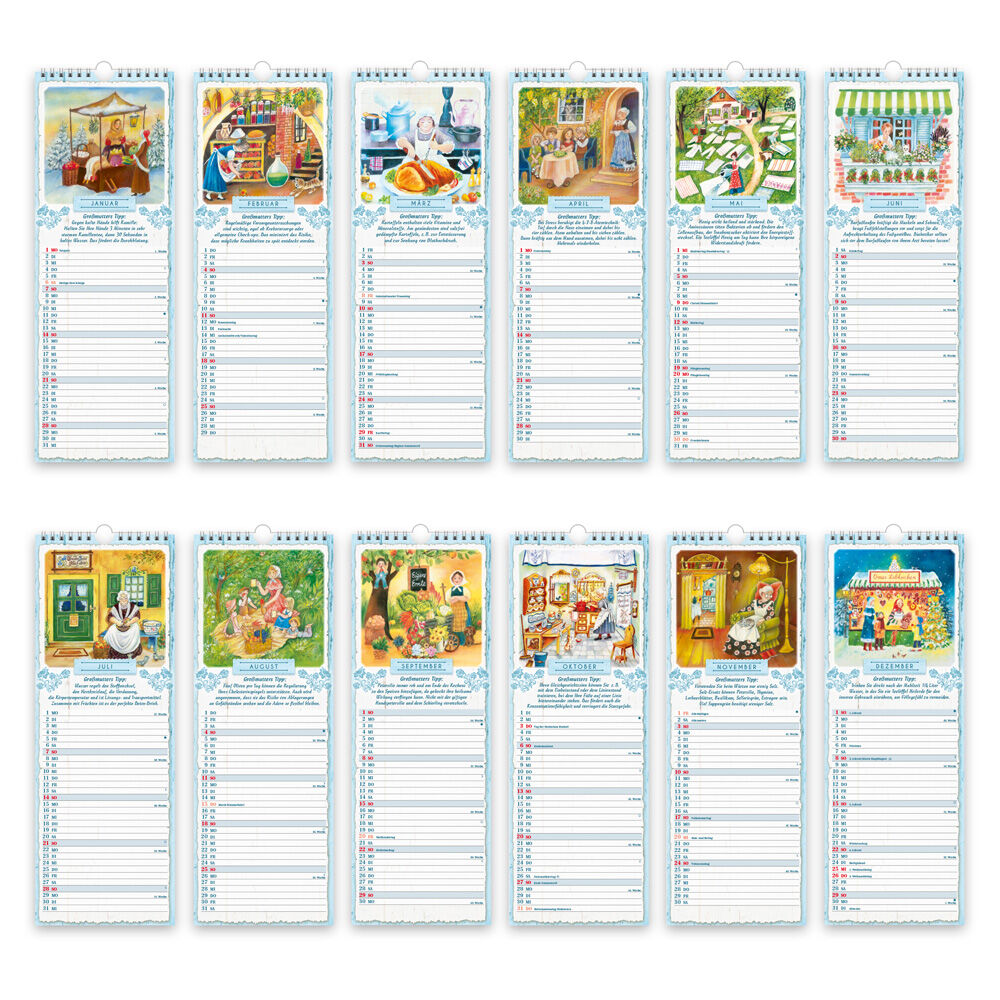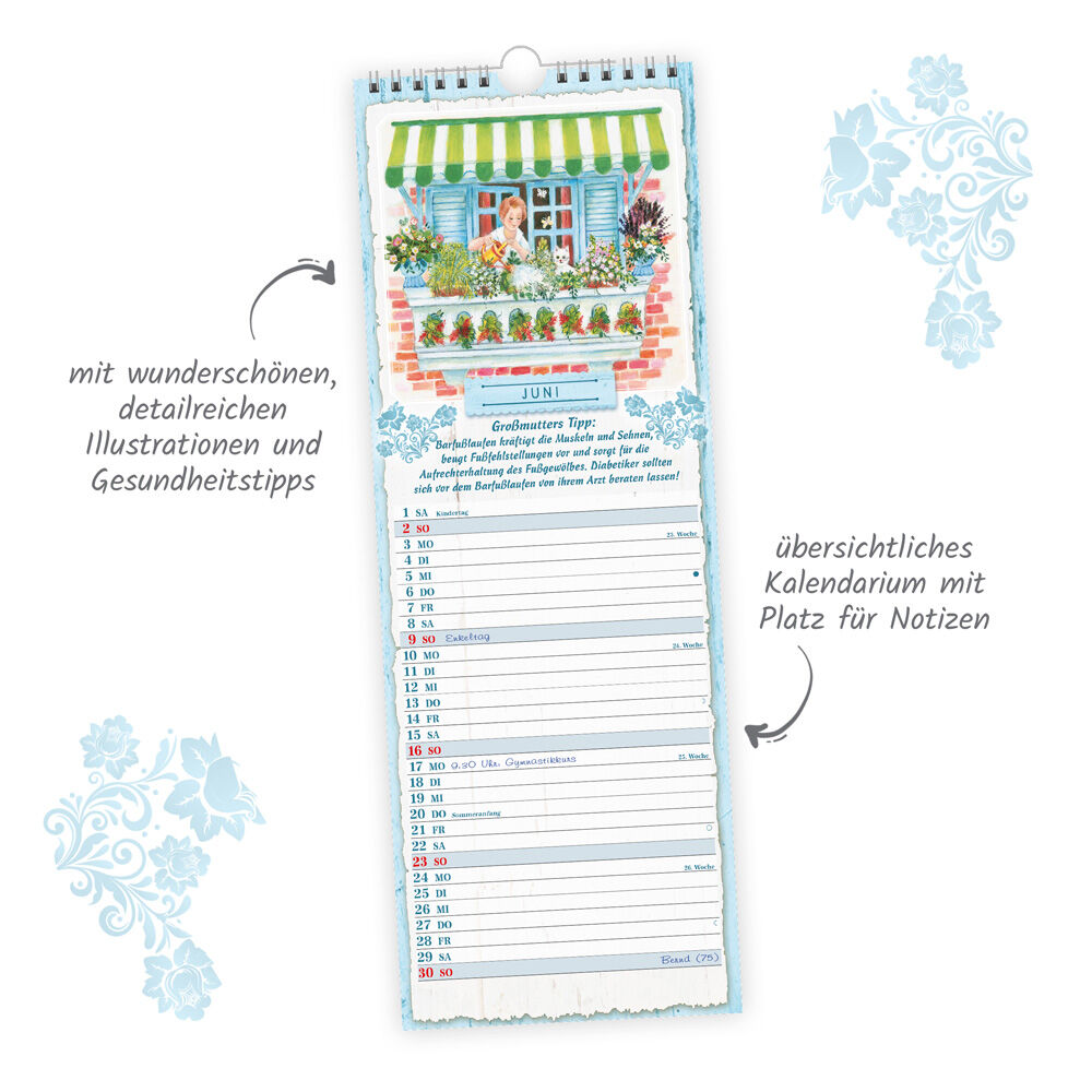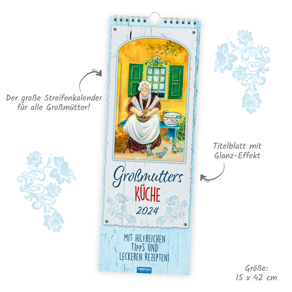 Gut ist, was satt macht und lecker schmeckt, das hat Oma schon immer gesagt! Ganz im Zeichen dieser Weisheit steht unser Streifenkalender GROSSMUTTERS KÜCHE im Format 15 x 42 cm. Mit seiner dekorativen Gestaltung und den detailreichen Illustrationen alltäglich...