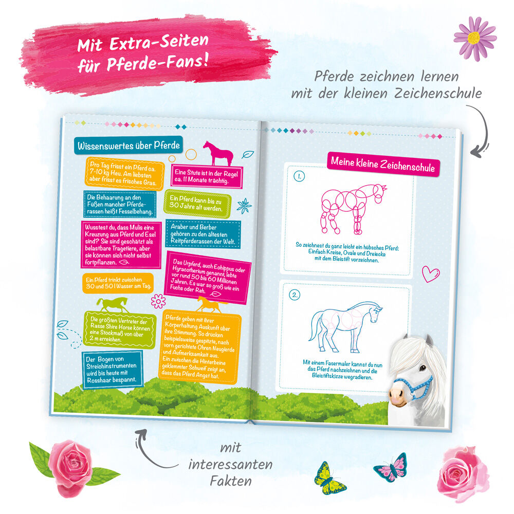 Lass deine Freunde in dein Freundealbum eintragen und halte sie für immer fest. Vielleicht erfährst du ja Träume und Ideen von denen du vorher gar nichts wusstest. Mit tollen Pferde- und Reiterhof-Motiven und Glitzer.
