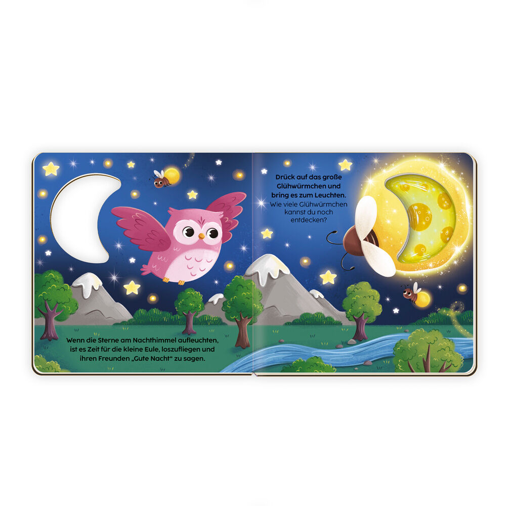 Was schimmert, funkelt und leuchtet denn hier in diesem besonderen Bilderbuch mit Licht? Begleite die kleine Eule auf ihrer Reise und hilf ihr dabei, ihren Freunden gute Nacht zu sagen und den Wald zum Leuchten zu bringen. Ein magisches Bilderbuch zum Vorlesen...