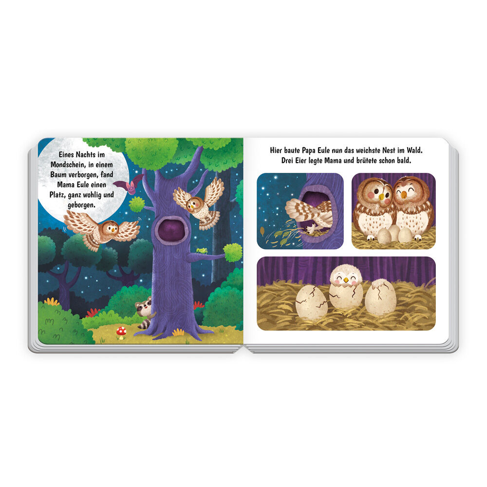Dieses wundervolle Pappenbuch begleitet die kleine Eule auf ihrer Reise vom Küken zum eigenen Nestbau und erzählt in stimmigen Reimen von einem Kreislauf in der Natur. Die Illustrationen ziehen schon die Kleinsten in ihren Bann und laden dabei zum Entdecken ei...