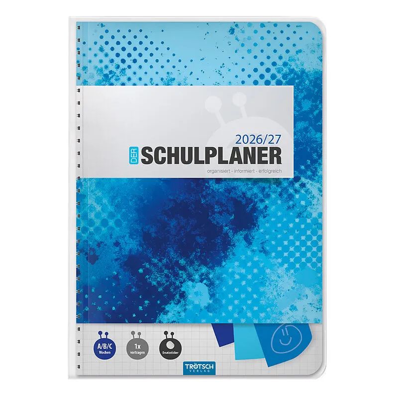 Der Schulplaner im DIN A5 Format mit extrastarkem Klarsichtumschlag ist mit einer Spiralbindung versehen, wodurch die Seiten leicht umgeblättert werden können. Auf einer Doppelseite pro Woche mit Kalendarium gibt es ausreichend Platz zum Eintragen von Aufgaben...