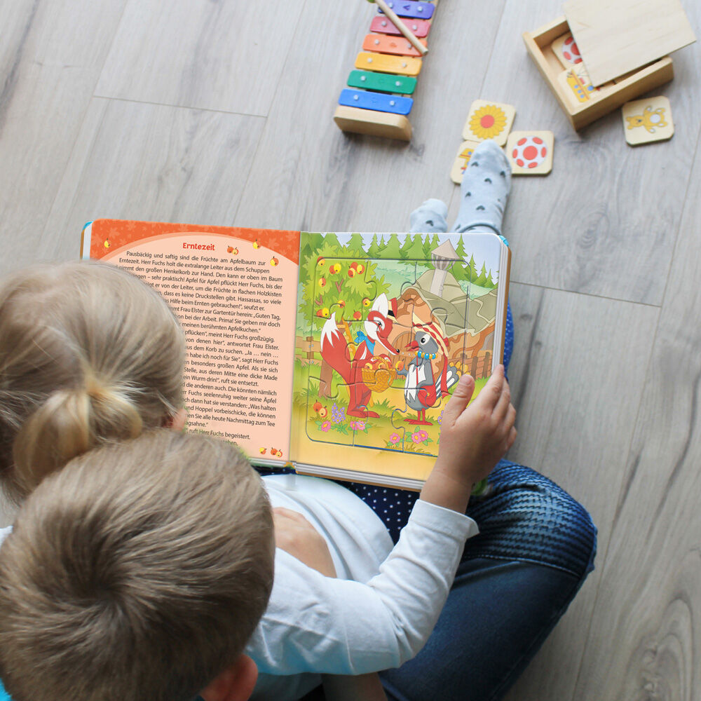 Das Puzzlebuch Fuchs und Elster ist eine ideale Freizeitbeschäftigung und fördert spielerisch das Vorstellungsvermögen der Kleinsten.