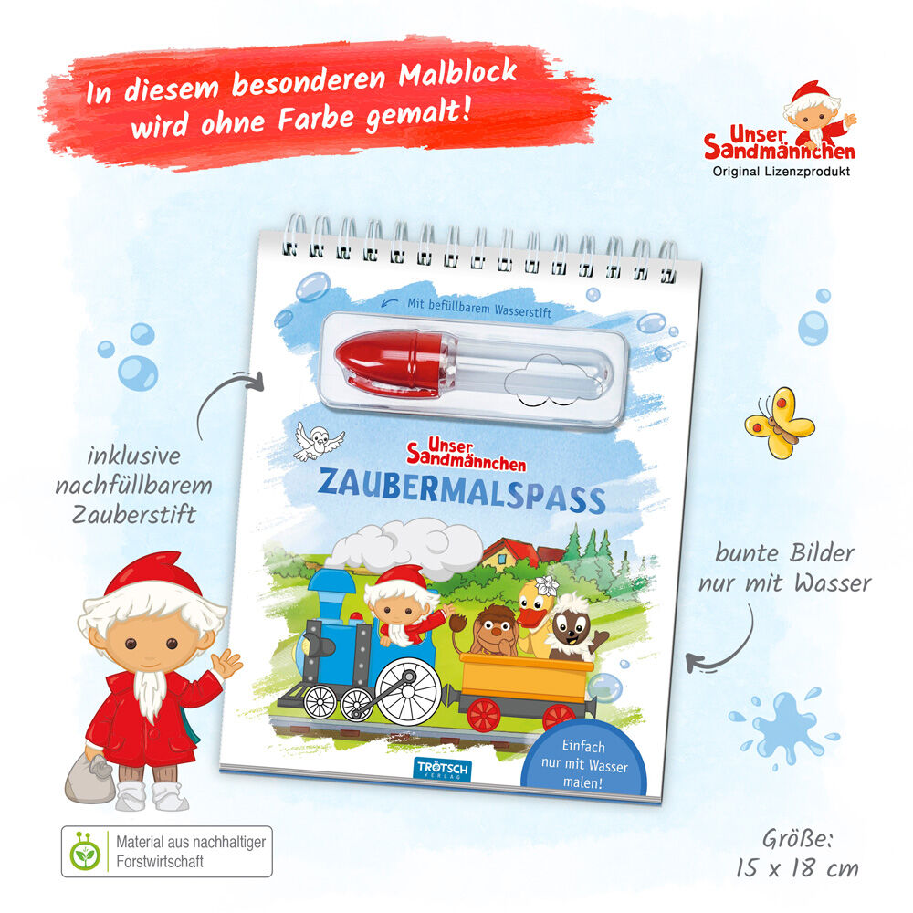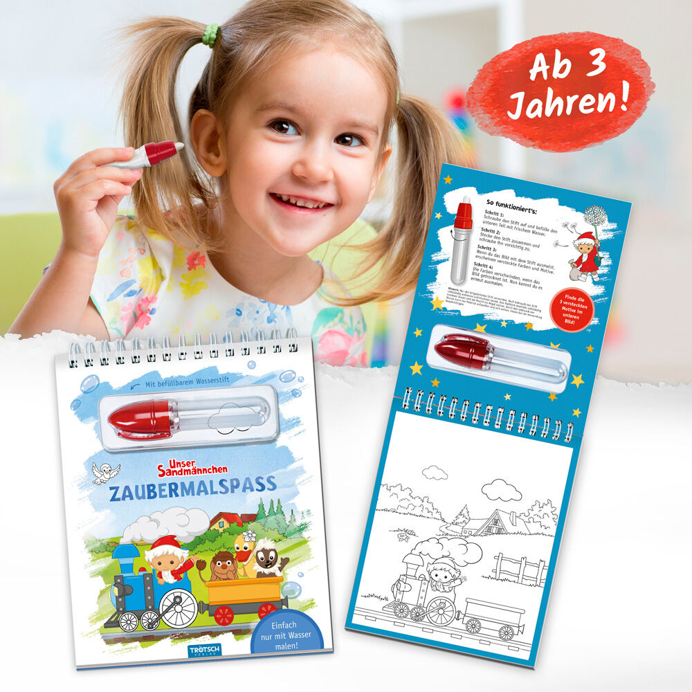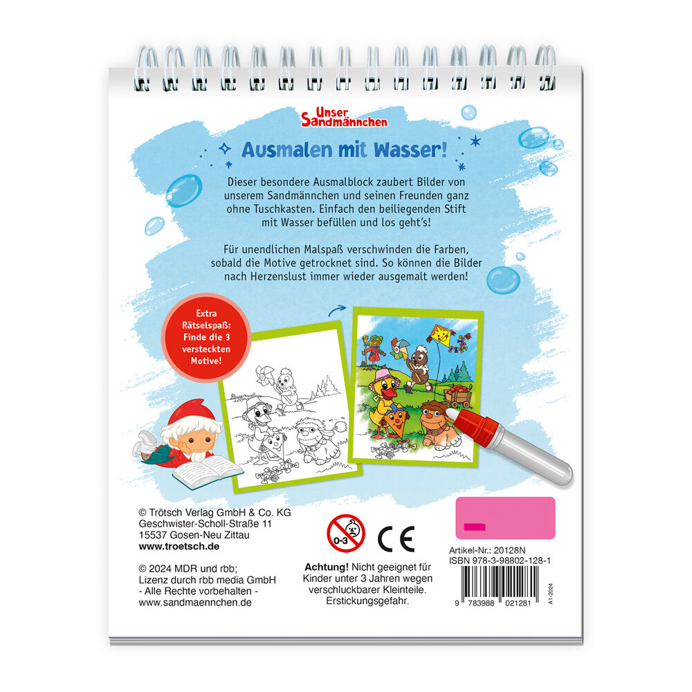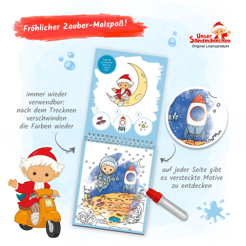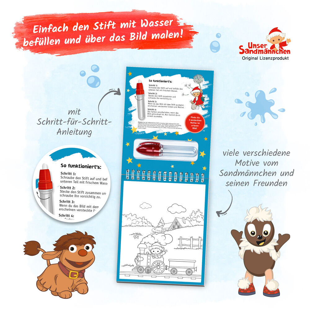 Mit Wasser malen wie von Zauberhand! Dieser besondere Ausmalblock hält tolle Motive vom Sandmännchen und seinen Freunden bereit. Kleine Künstler kommen ganz ohne Tuschkasten oder zusätzliche Stifte aus! Einfach den beiliegenden Zauberstift mit Wasser befüllen,...
