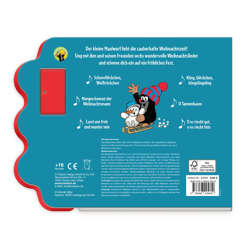 Der kleine Maulwurf und seine Freunde feiern Weihnachten! Dieses bunte Soundbuch mit den Melodien der 6 bekannten Weihnachtslieder Schneeflöckchen, Weißröckchen, Kling, Glöckchen, klingelingeling, Morgen kommt der Weihnachtsmann, O Tannenbaum, Lasst uns froh u...