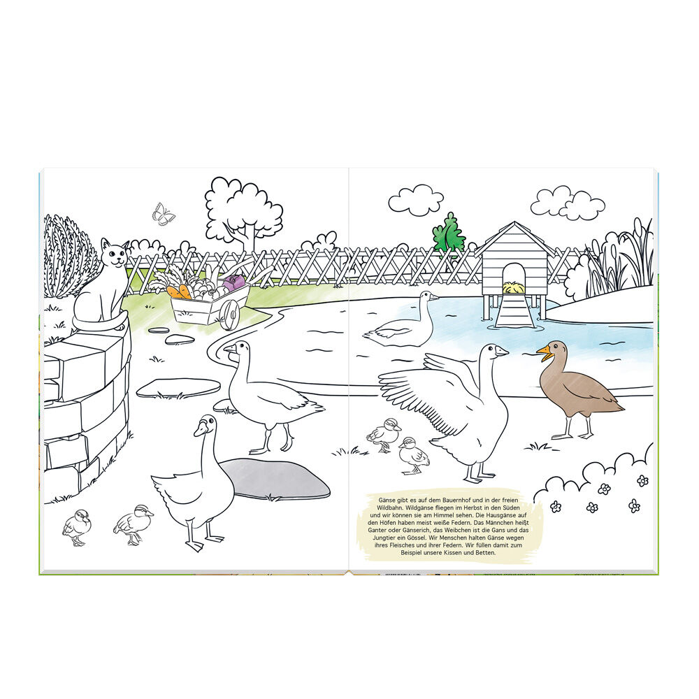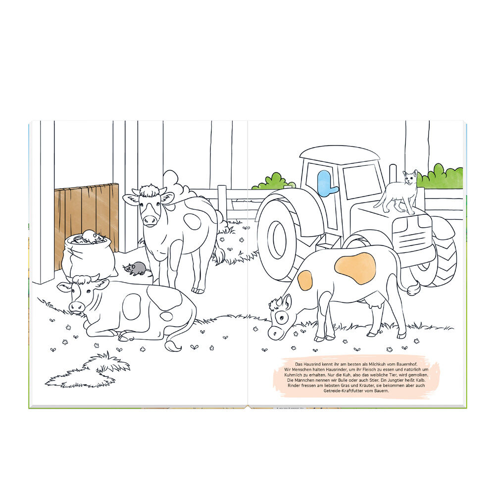 Komm mit auf den Bauernhof! Auf dem Bauernhof leben viele Tiere und es gibt immer etwas zu lernen und zu entdecken. Mach mit! Male alle Bauernhoftiere bunt aus und lass deinen Traktor an ihnen vorbeituckern. Dieses tolle Set bietet 16 Seiten tierischen Ausmals...