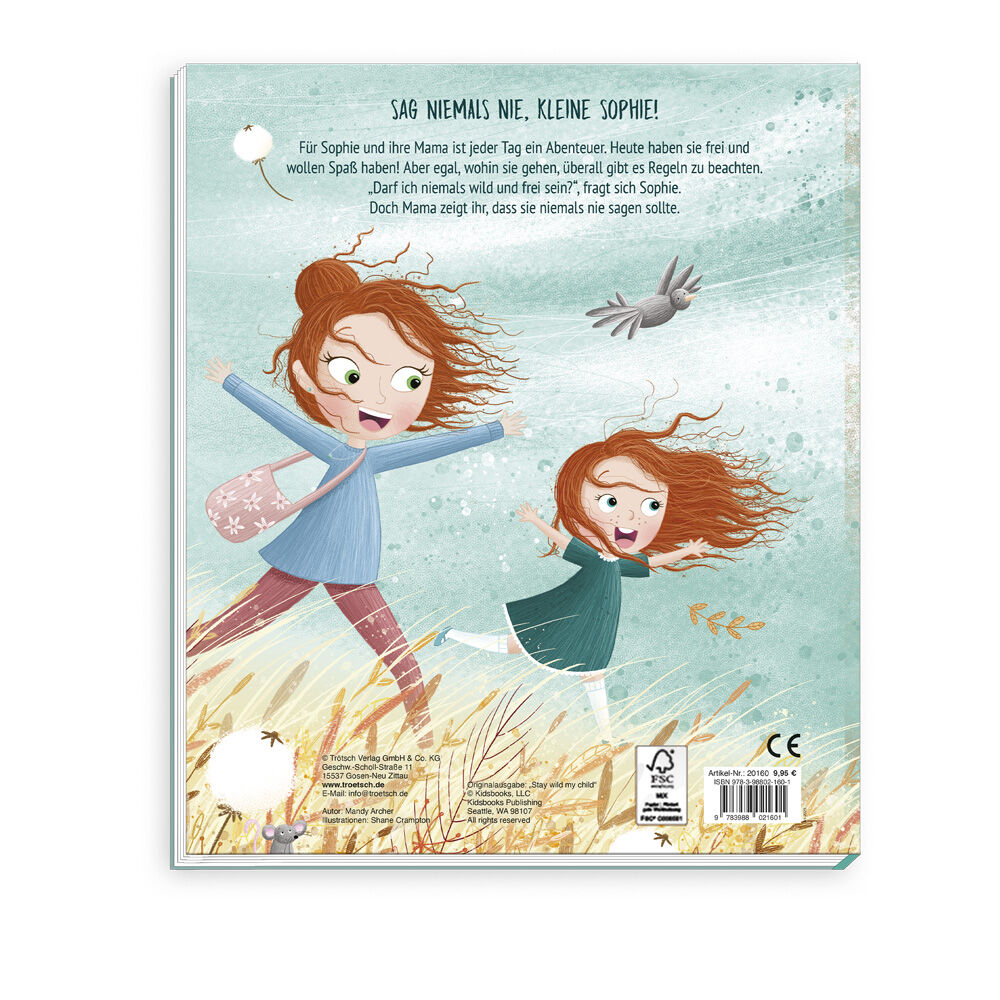 Für Sophie und ihre Mama ist jeder Tag ein Abenteuer. Heute haben sie frei und wollen Spaß haben! Aber egal, wohin sie gehen, überall gibt es Regeln zu beachten. Darf ich niemals wild und frei sein?, fragt sich Sophie. Doch Mama zeigt ihr, dass sie niemals nie...