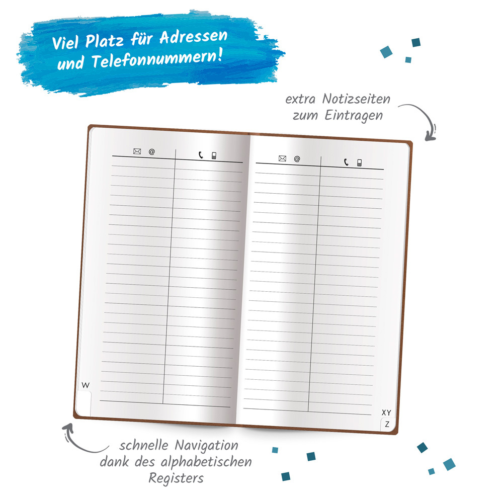 Egal ob auf Reisen oder im Alltag: Dieses moderne Adressbuch im praktischen Format bringt mehr Ordnung ins Leben und sorgt dafür, dass alle wichtigen Adressen und Daten zu jeder Zeit griffbereit sind. Das A-Z Register ermöglicht die schnelle Navigation und bie...