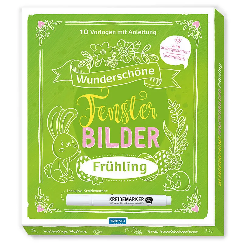 Wunderschöne Fensterdeko für viele Anlässe zum Selbstgestalten! Die Motive werden mit dem Kreidestift ganz einfach auf die Fensterscheibe übertragen. Der Stift ist rückstandslos entfernbar. Für Fenster, Vitrinen und alle anderen glatten Glasflächen!